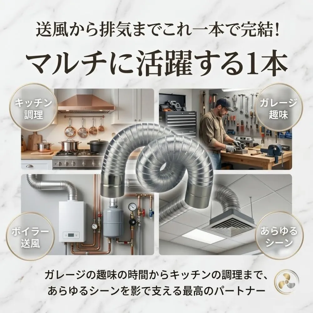 【マルチに活躍する1本】送風から排気までこれ一本で完結。ガレージの趣味の時間からキッチンの調理まで、あらゆるシーンを影で支える最高のパートナーになります