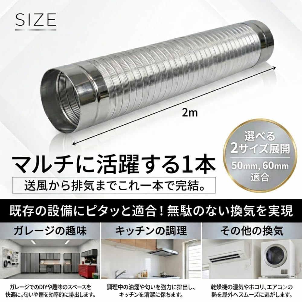 ダクトホース アルミダクト 排気 アルミ 蛇腹 換気 換気パイプ ダクト 伸縮式 2m (60mm)