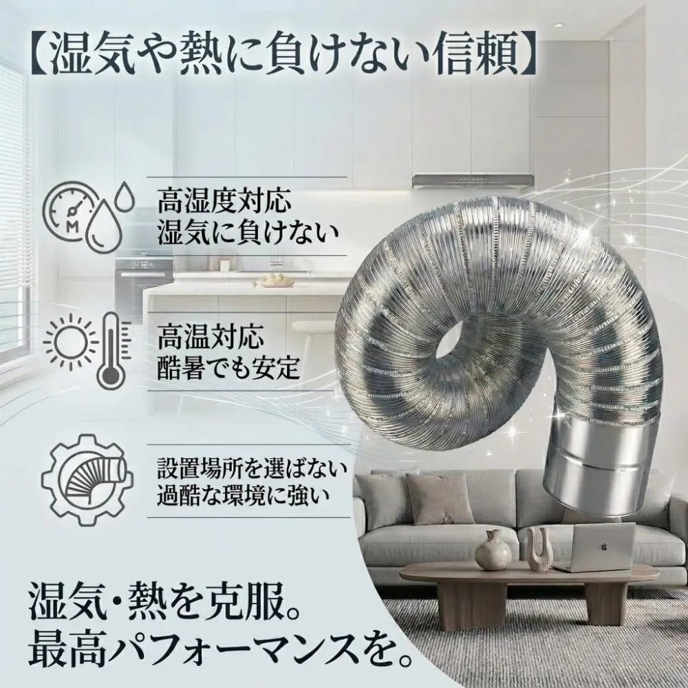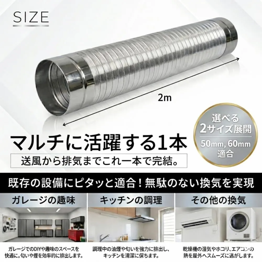 【設置の悩みを解消】50mm、60mmの選べるサイズ展開で、既存の設備にピタッと適合。サイズ違いによるストレスから解放され、無駄のない換気を実現。