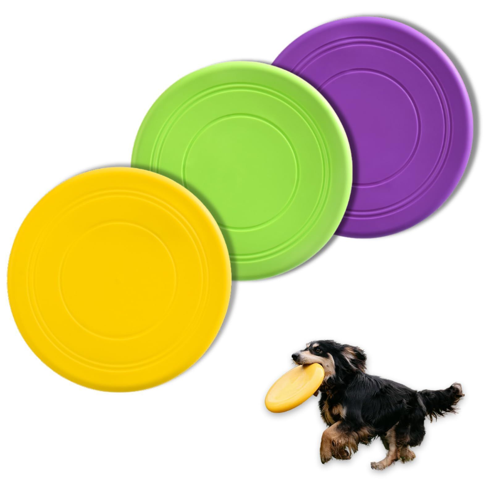 犬用フリスビー 投げるおもちゃ 3個セット シリコン製 柔らかい ペットおもちゃ 運動不足解消 歯耐性ゴム 知能訓練 小型犬 中型犬 (グリーン・イエロー・パープル)