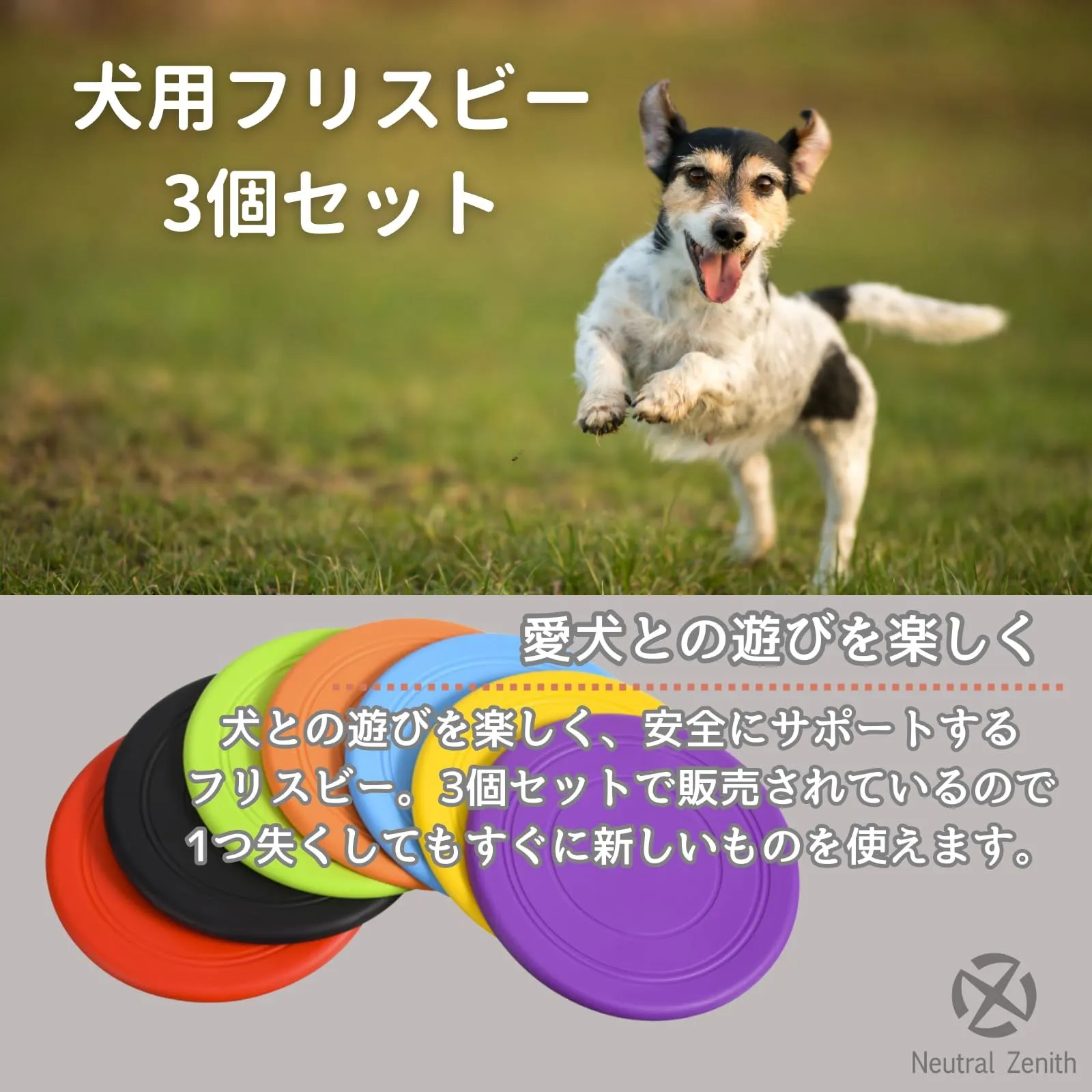 【犬用フリスビー 3個セット】犬との遊びを楽しく、安全にサポートするフリスビー。3個セットで販売されているので、1つ失くしてもすぐに新しいものを使えます。