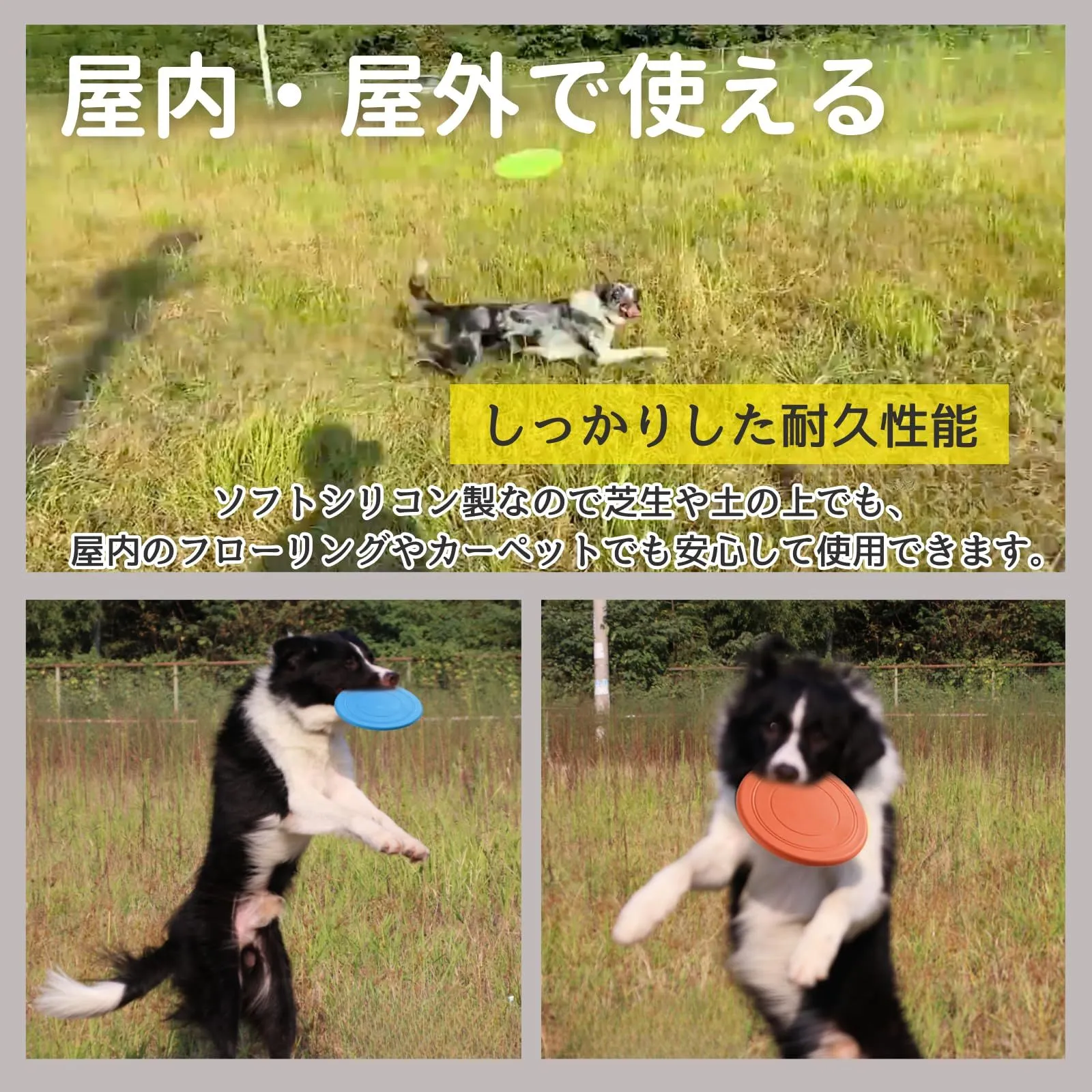 【屋内・屋外で使える】ソフトシリコン製なので、芝生や土の上でも、屋内のフローリングやカーペットでも安心して使用できます。家の中外どちらでも対応可能です。