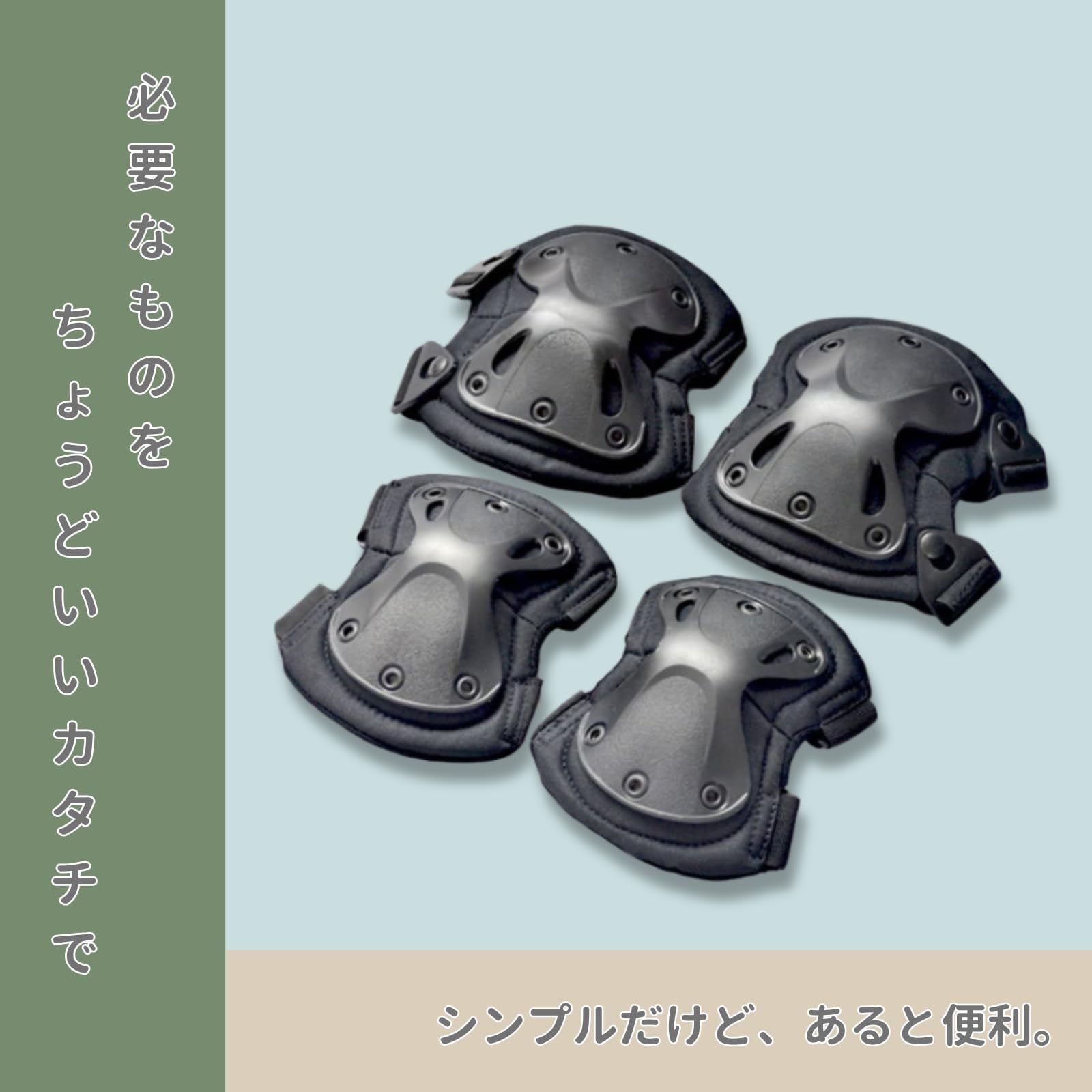 プロテクター サバゲー 装備 肘 膝パッド ニー バイク スノボ スケボー サバイバルゲーム サイクリング フリーサイズ (ブラック)