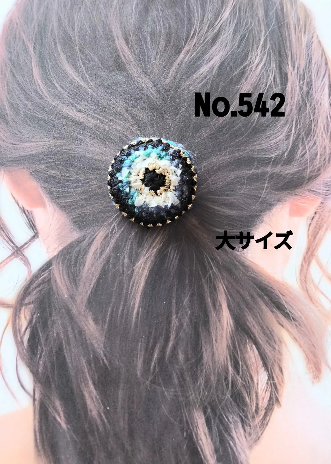 マルチカラーのニットくるみボタンヘアゴム大サイズ