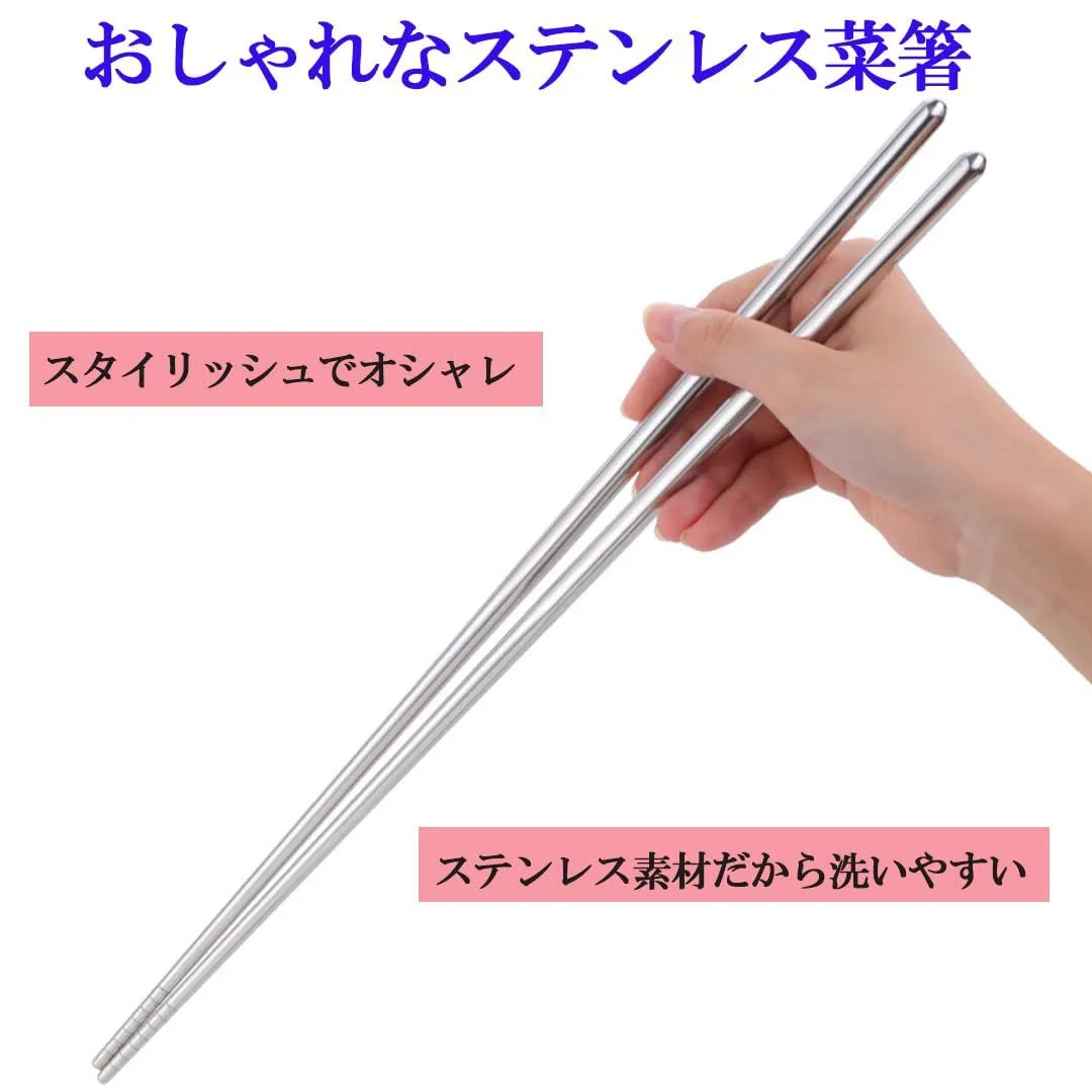 【おしゃれなステンレス菜箸】シンプルでエレガントなデザインがおしゃれなステンレス製の菜箸。家庭での日々の調理がはかどる使い勝手のよいアイテムで、ステンレスなのでお手入れもしやすいです。毒性がなく、高温調理でも人体に影響を及ぼささないので安心安全にお使いいただけます。