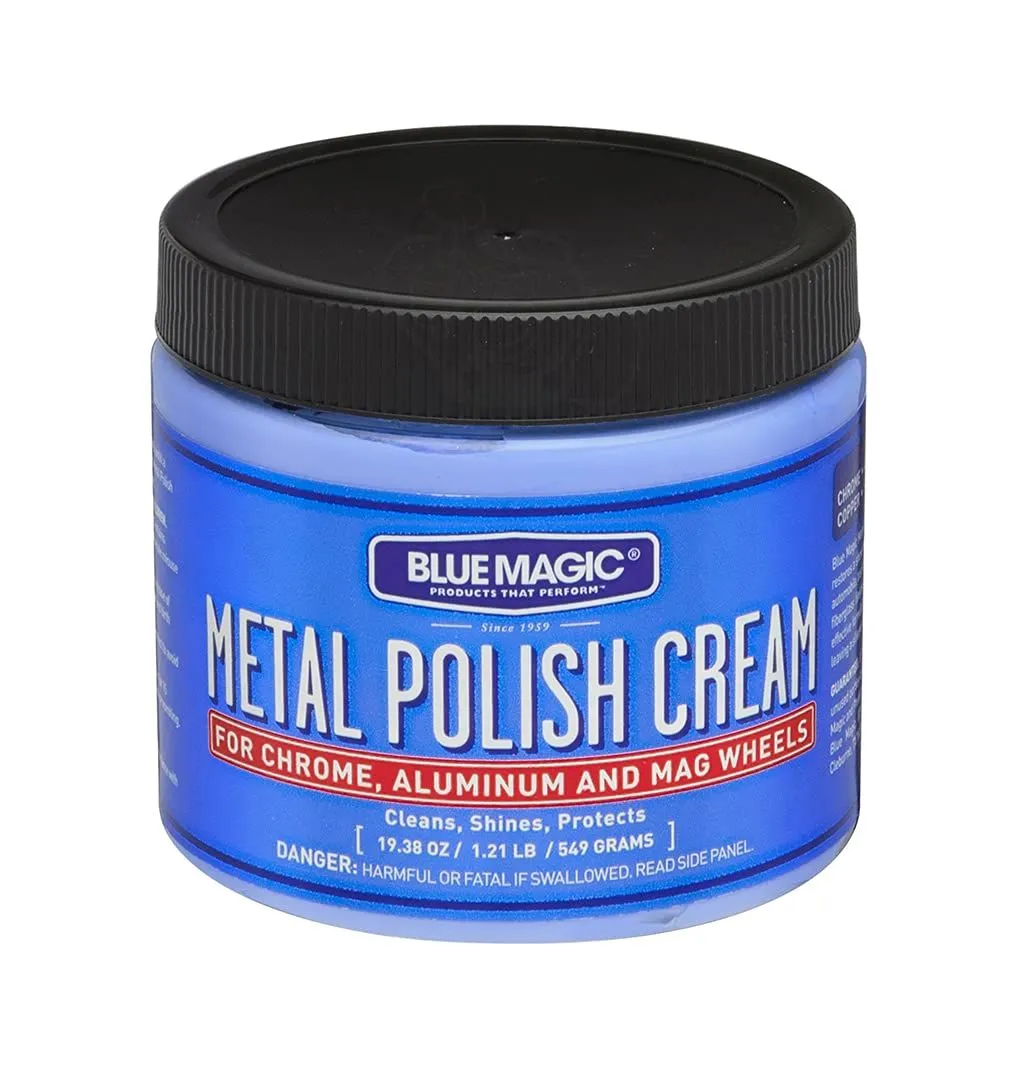 ブルーマジック メタルポリッシュクリーム 549g BM500は、金属表面の酸化・サビ・汚れ等を除去しシリコンコーティングします。コンパウンドを含まずアルミ、マグネシウム、金、銀、銅、ステンレス等に使用できます。