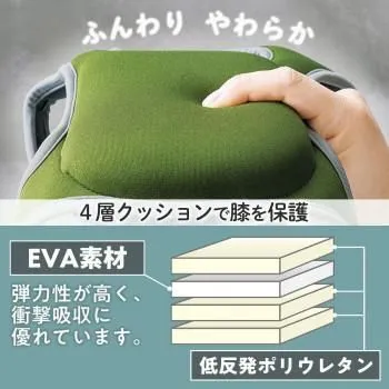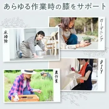 ガーデニングや園芸、お部屋掃除など膝をつく作業時の負担を軽減する膝当てパッド。EVA素材のクッションと低反発ポリウレタンを使用しているため柔らかい。