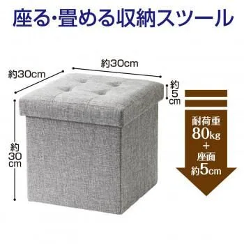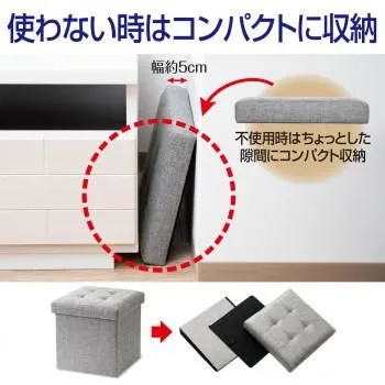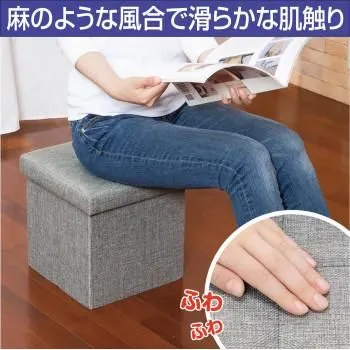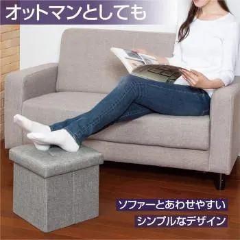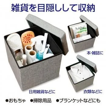 サッと組み立てて、収納ボックスに!どこにでも収納スぺースを増やせます。スツールやソファに座った時の足置き(オットマン)として使用することもできます。シンプルデザインでお部屋に置きやすい!使わない時は、コンパクトに折り畳んで保管できます。