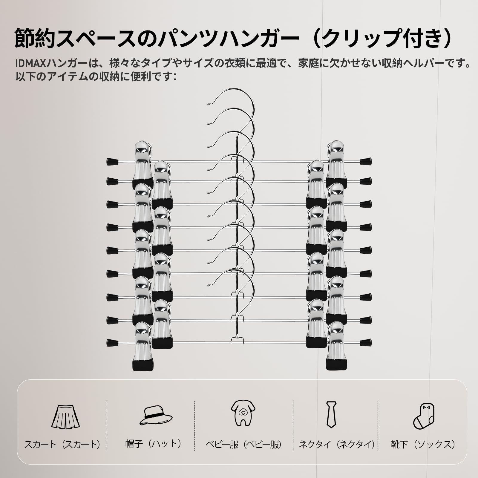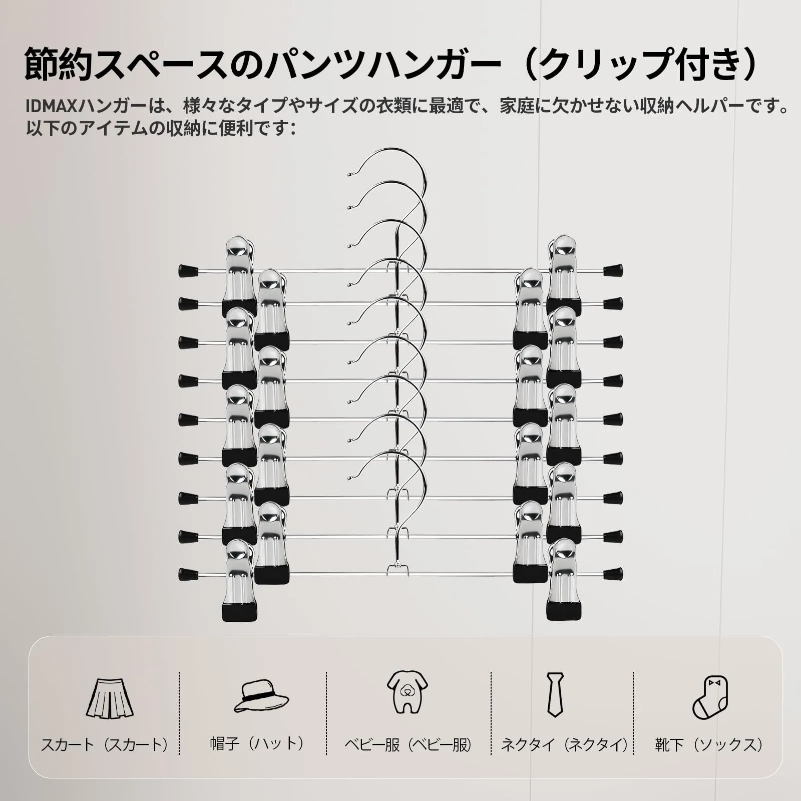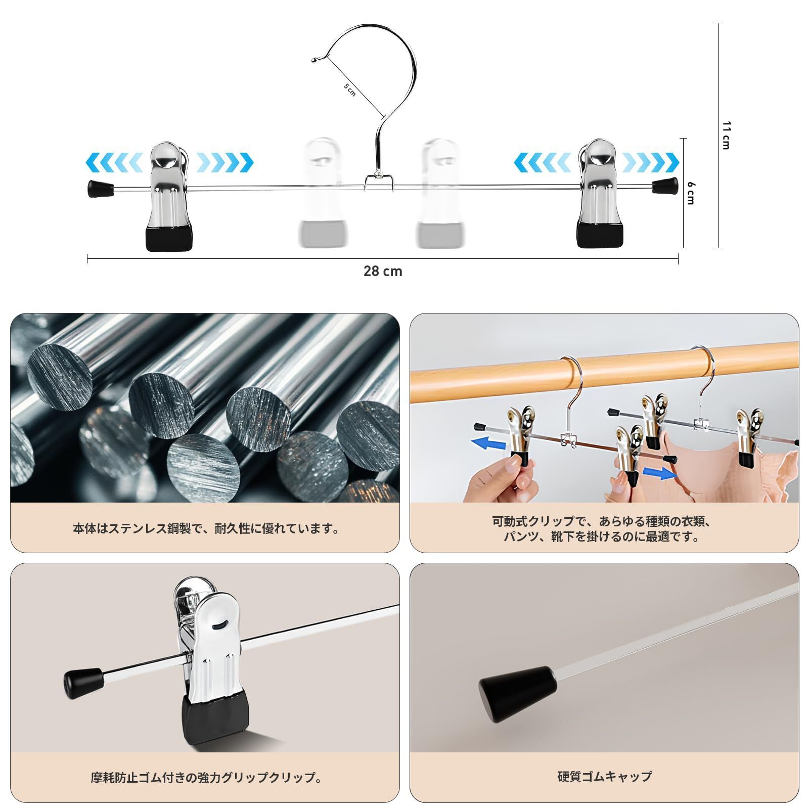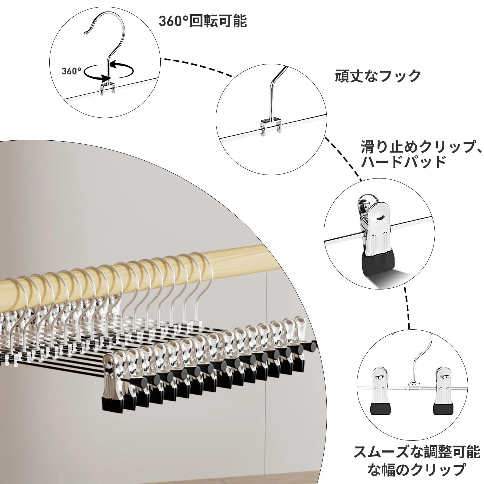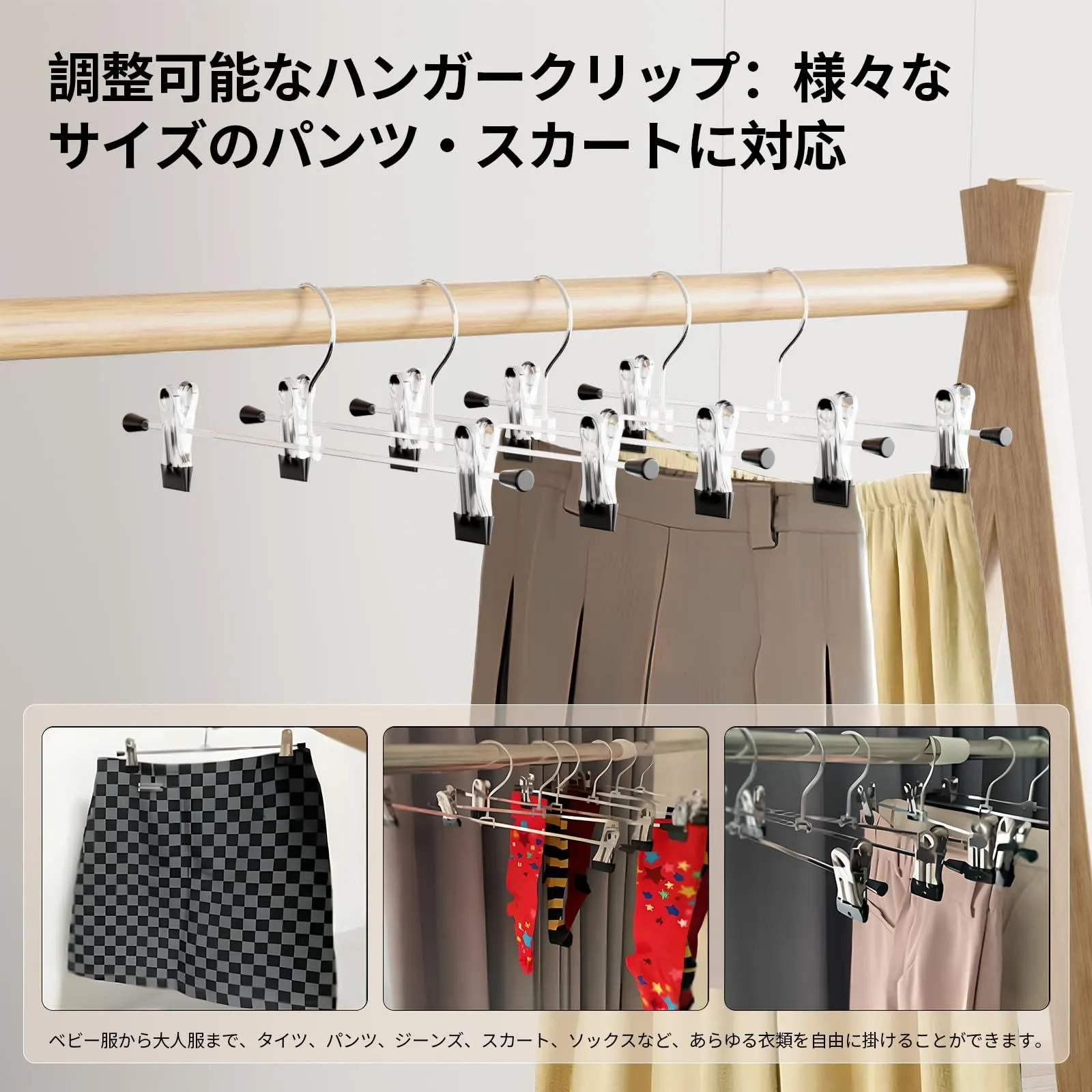 ズボンハンガー スカートハンガー セット すべらない スカート つながるスカートハンガー 強力クリップでスカート落ちない スーツ コート用クリップ (幅28.5cm)ブラック