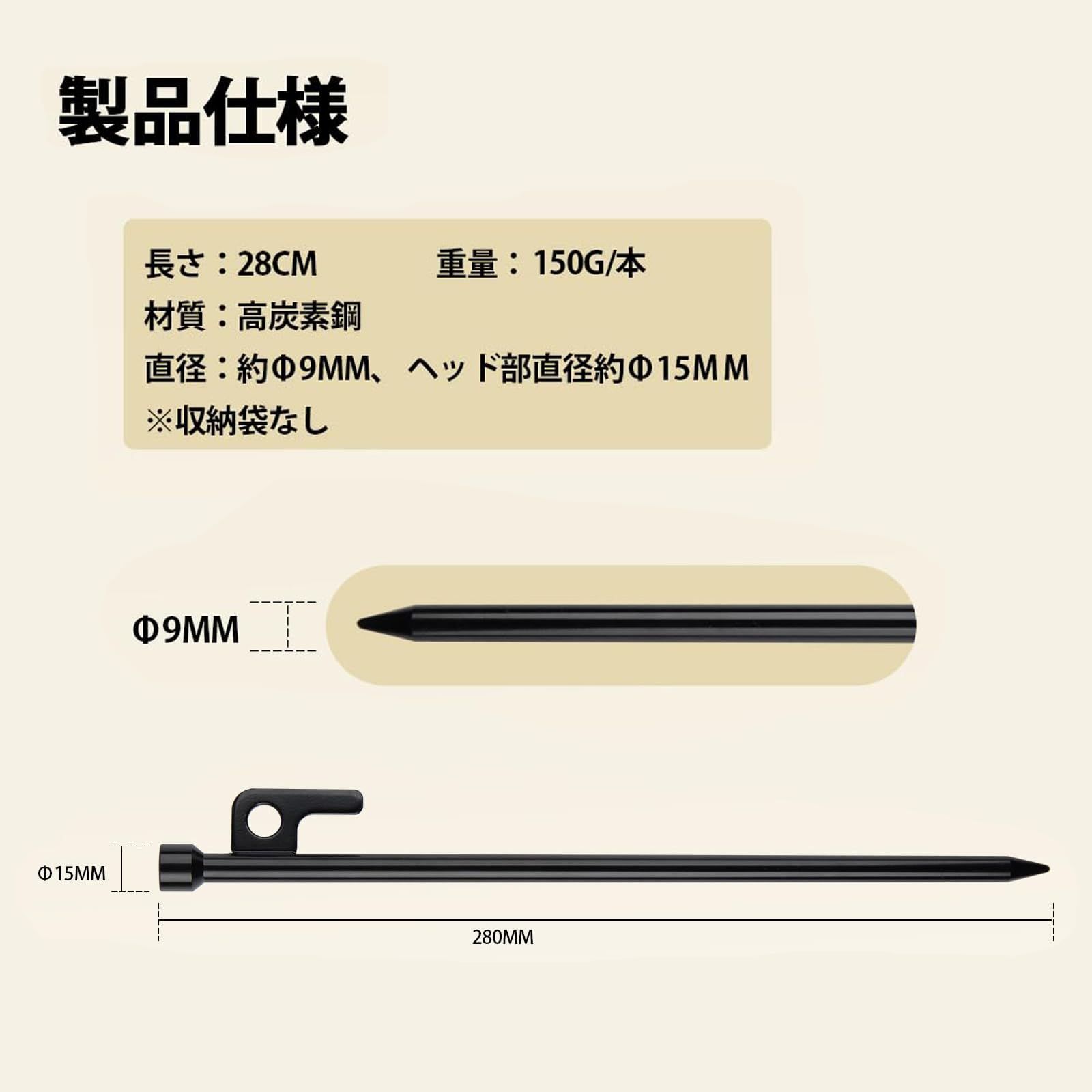 サイズ: ペグ 28cm 8本 収納袋なし