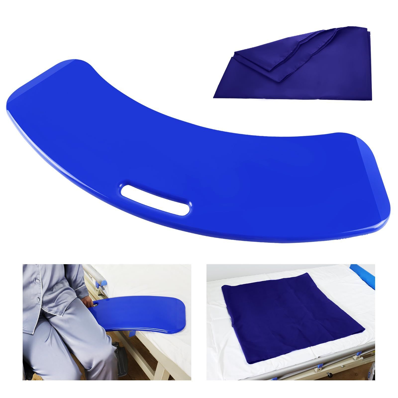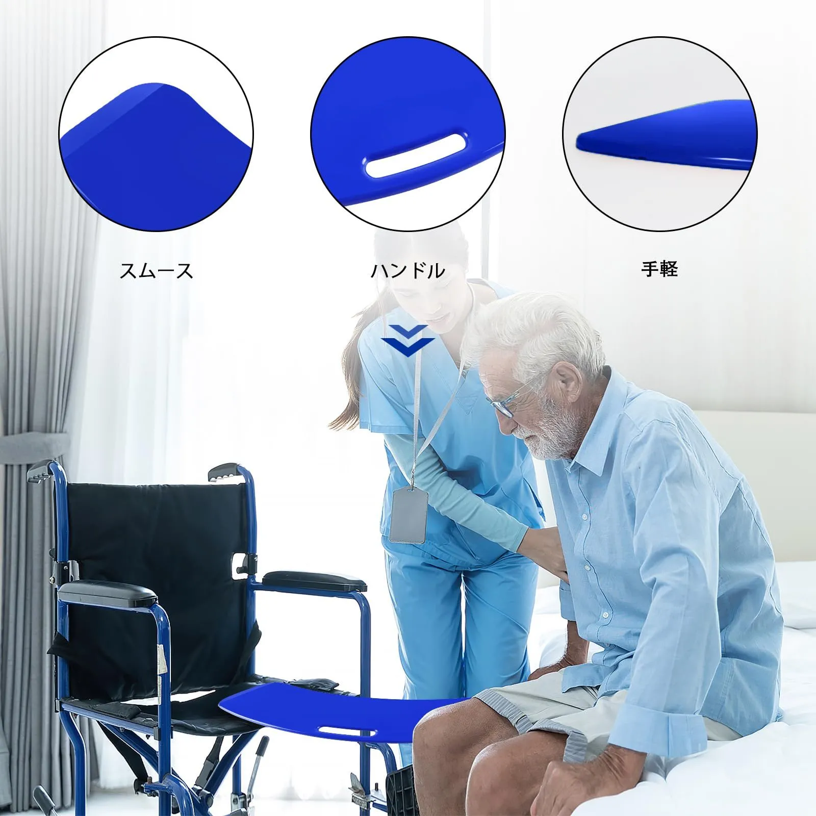 移乗用ボード、高齢者用トランスファーボード、スライド式補助具 患者や障害者を車椅子からベッド、トイレ、風呂、車などに移乗させるためのもの - チューブラースライドシート付きスライドボード(青)