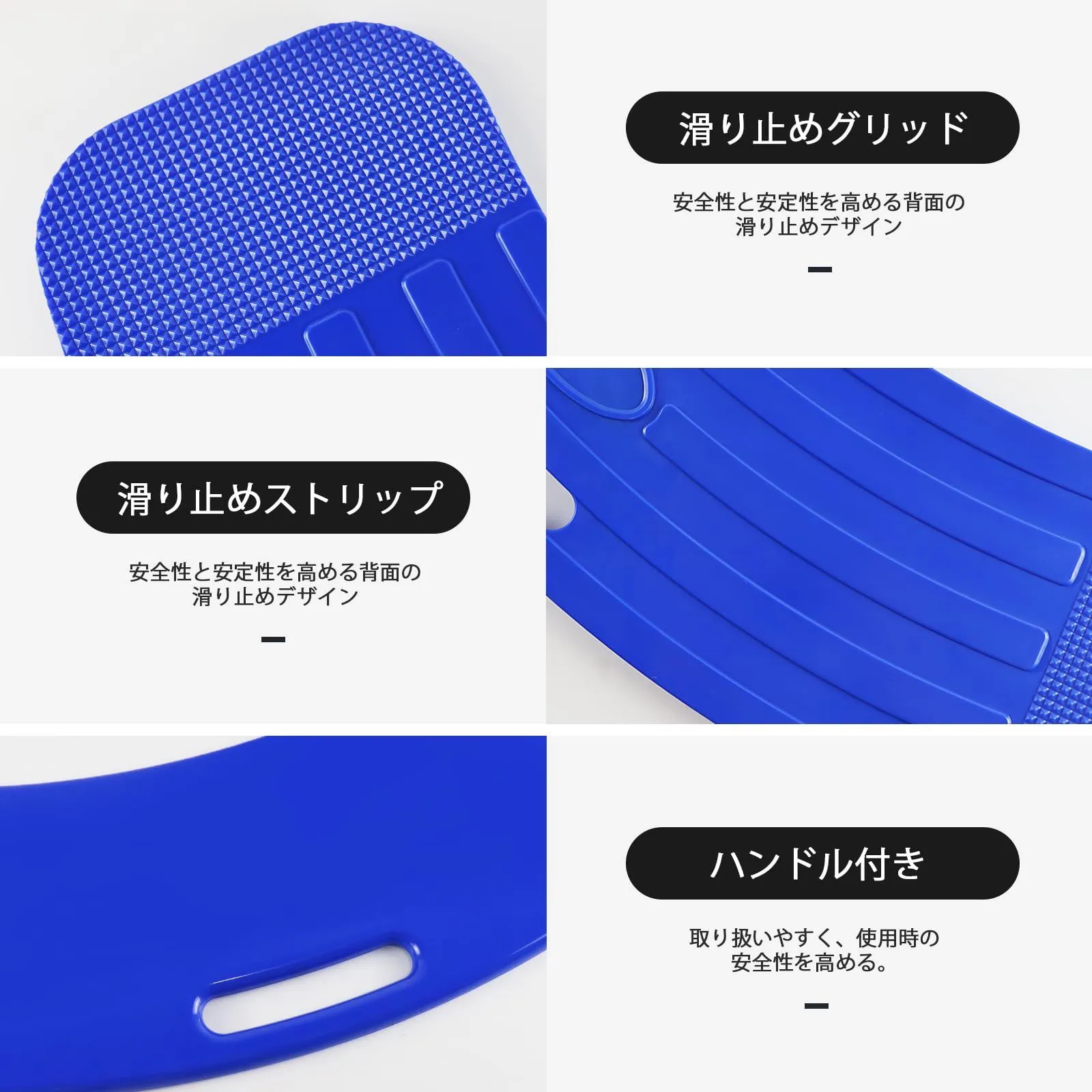 【滑り止めデザイン】:背面に滑り止めデザインを施し、移乗ボードをより確実に設置することで、使用時の安全性を高め、患者さんの転倒や怪我を防止します。