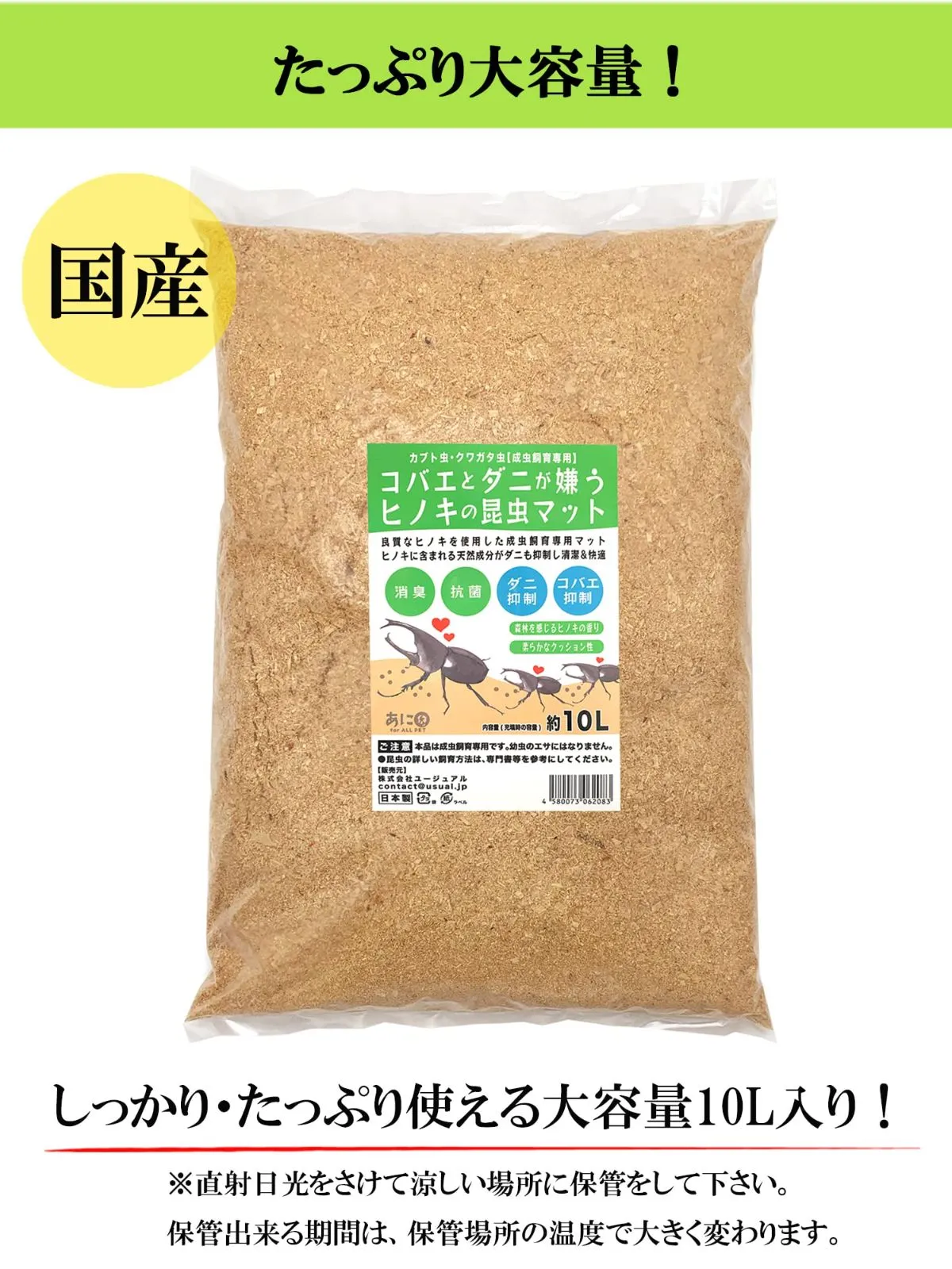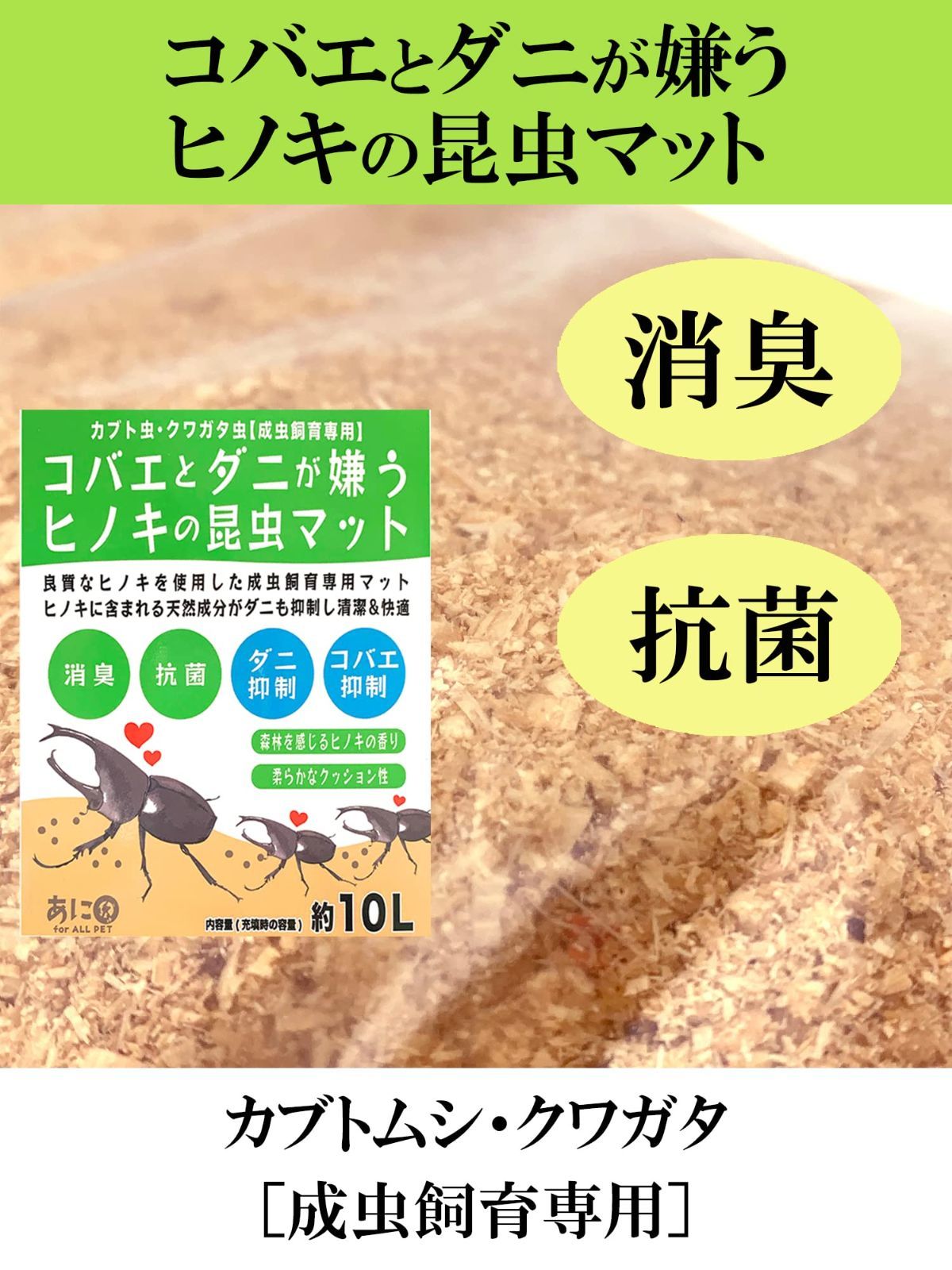 昆虫マット ヒノキ チップ カブトムシ クワガタ 成虫用 10リットル 天然素材100% 消臭 抗菌 床材 おがくず