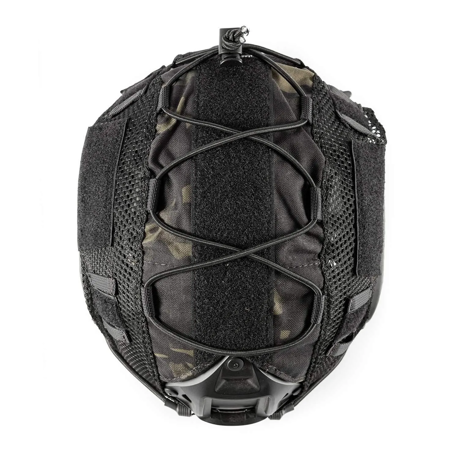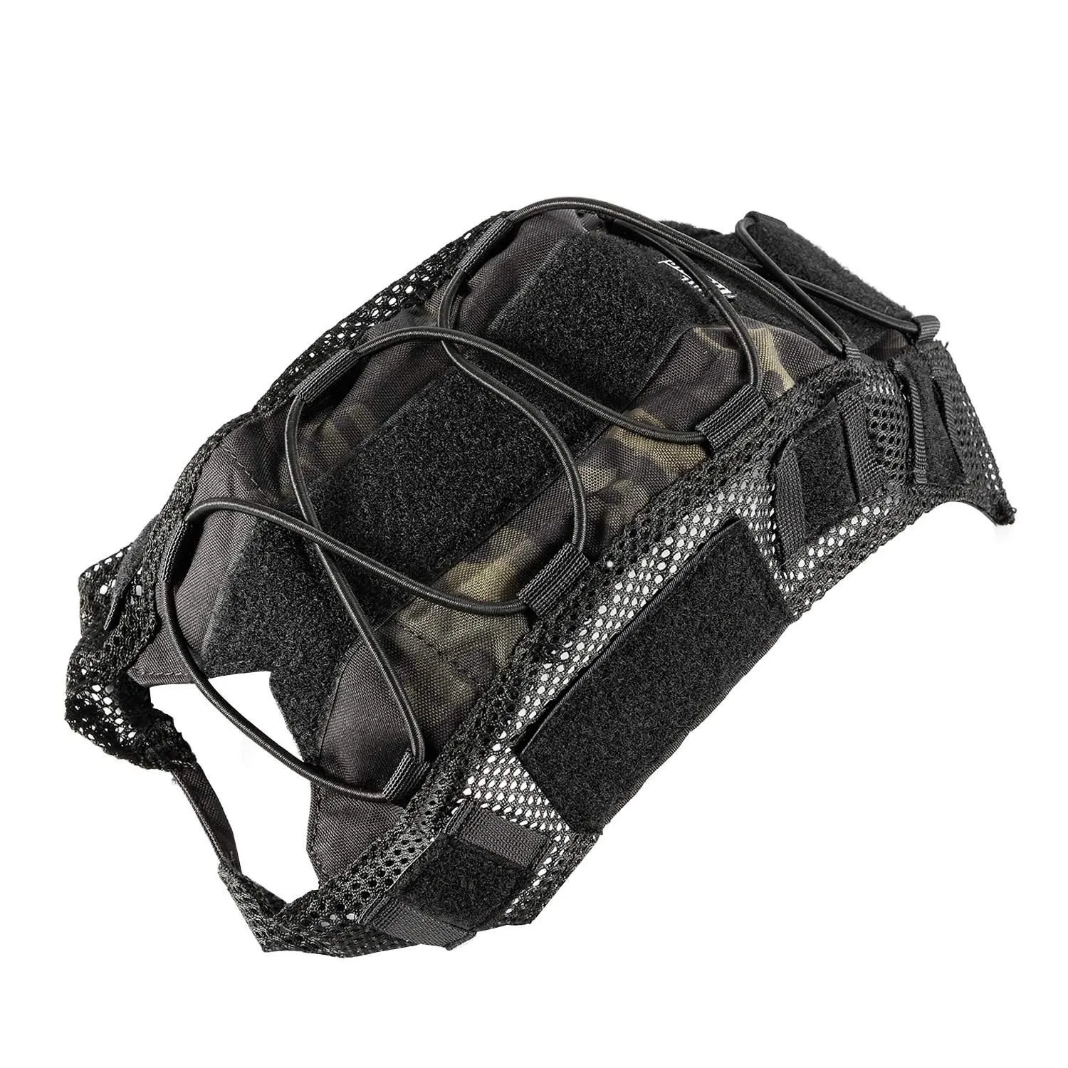 簡単な取り付け:MOLLE と面ファスナーシステム、クロスエラスティックコードにより、ヘルメットカバーをヘルメットに簡単かつ確実に装着できる。