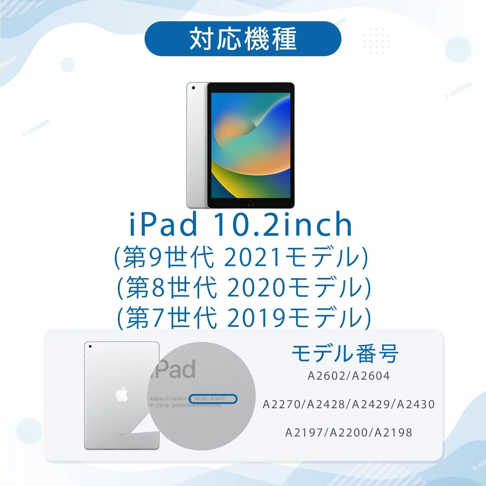 【対応機種】iPad 10.2インチ 2019年発売モデル 第7世代 A2197 A2200 A2198、2020年発売モデル 第8世代 A2270 A2428 A2429 A2430、2021年発売モデル 第9世代 A2602 A2604