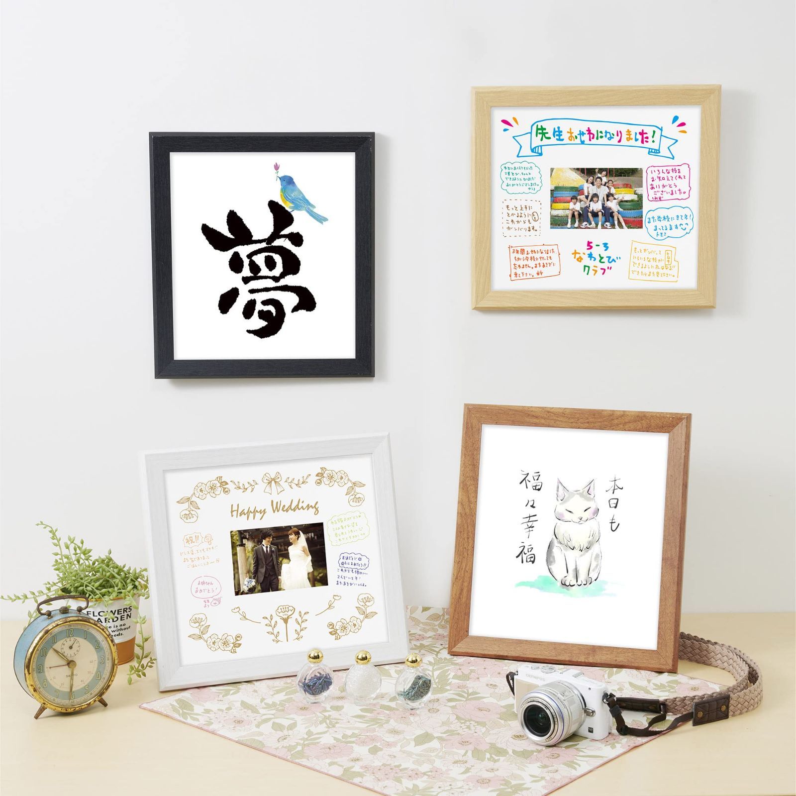 色紙を飾る額縁としてはもちろん、付属の中額に写真をセットしてメッセージを書き込めば素敵なプレゼントにも。寄せ書きをしたり、お子様のイラストを飾る額としてもお使いいただけます。