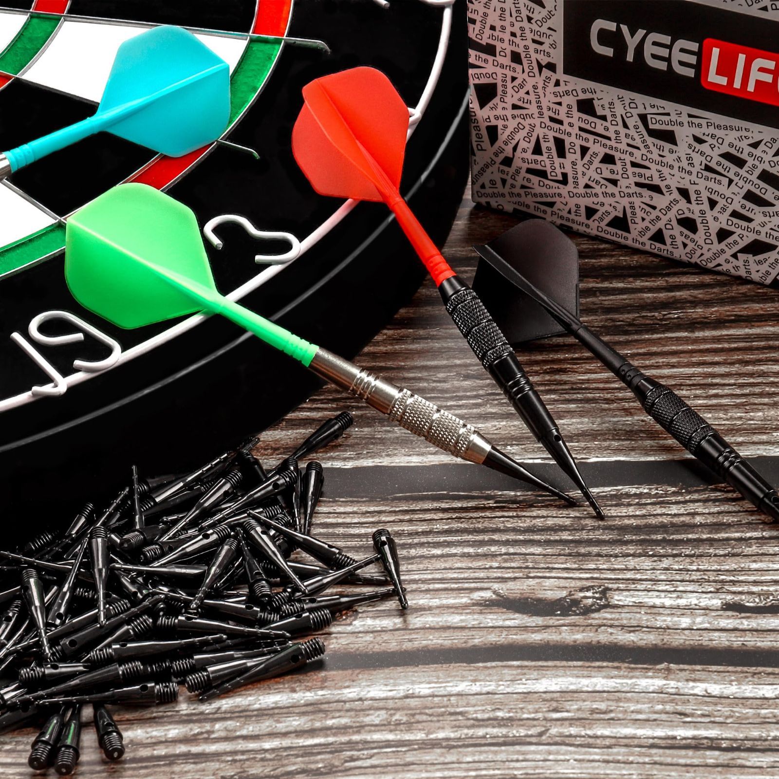 ダーツセットには: ソフトダーツ12本,ダーツ飛行12回,ダーツチッププラスチックとギフトボックス50個.