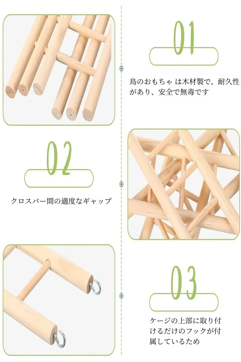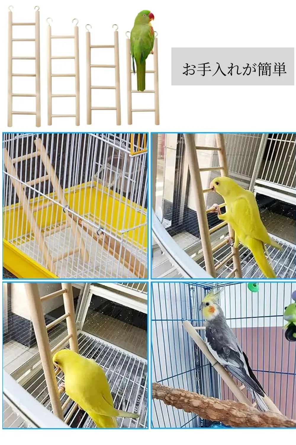 【パッケージ内容】木製オウムはしご4種類のサイズをお届けします。 異なるサイズの木製オウムはしごは、ペットやオウムの遊びのニーズを満たします。