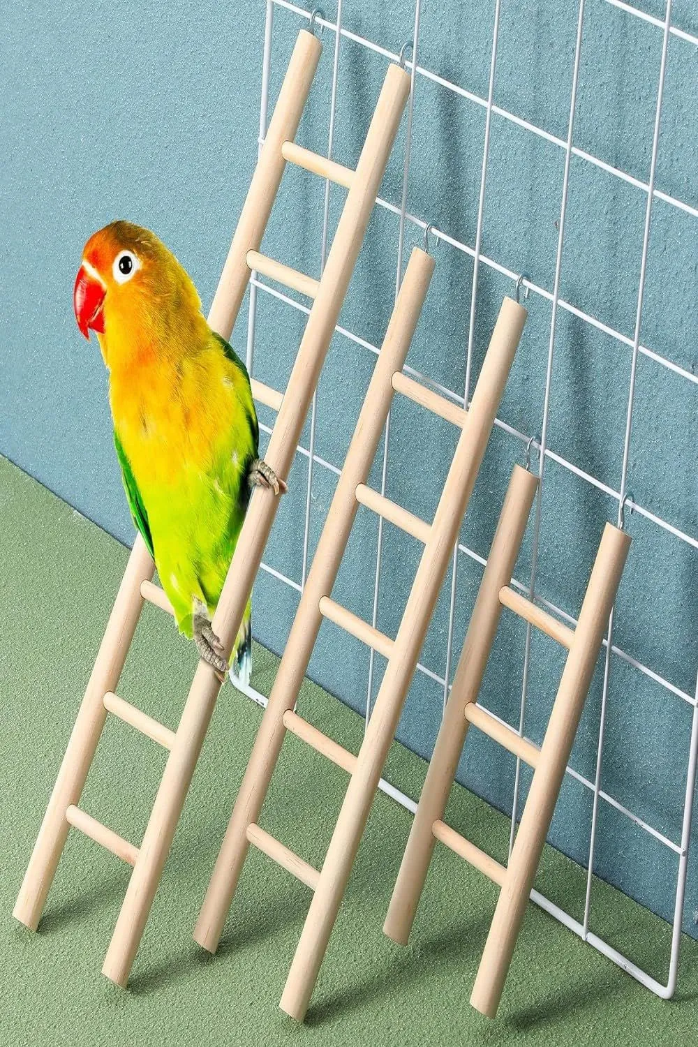 【木製鳥はしご 】オウムのはしごおもちゃは、ペットがジャンプしてくちばしを整え、健康を改善するのに役立ちます。木製のはしごは登山の欲求を満たします, 飛んで遊んで. 不安の孤独を和らげるのに役立つ素敵なペットにとっては良い選択です。