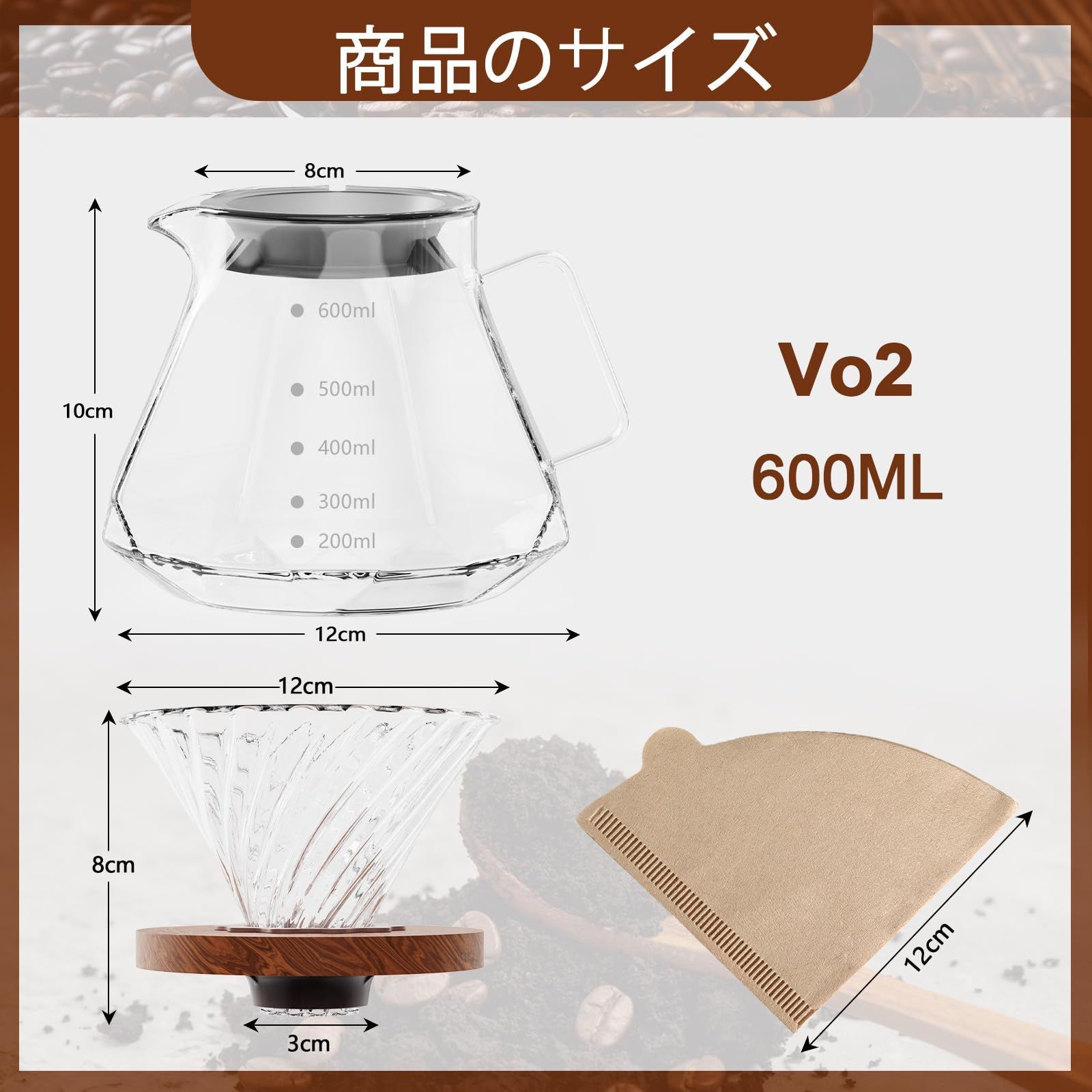 コーヒーサーバー 耐熱ガラス 木製ホルダー ドリッパー 600ml 目盛付き 2~4人用 ドリップ器具 電子レンジ可 V60 ハンドドリップセット カラフェ 喫茶店 カフェ