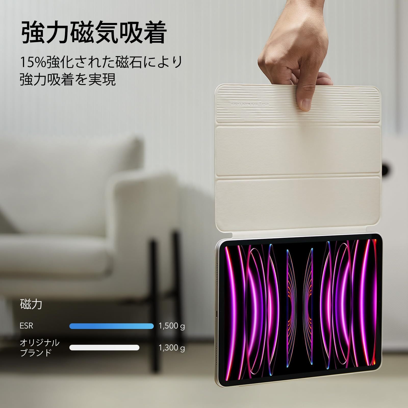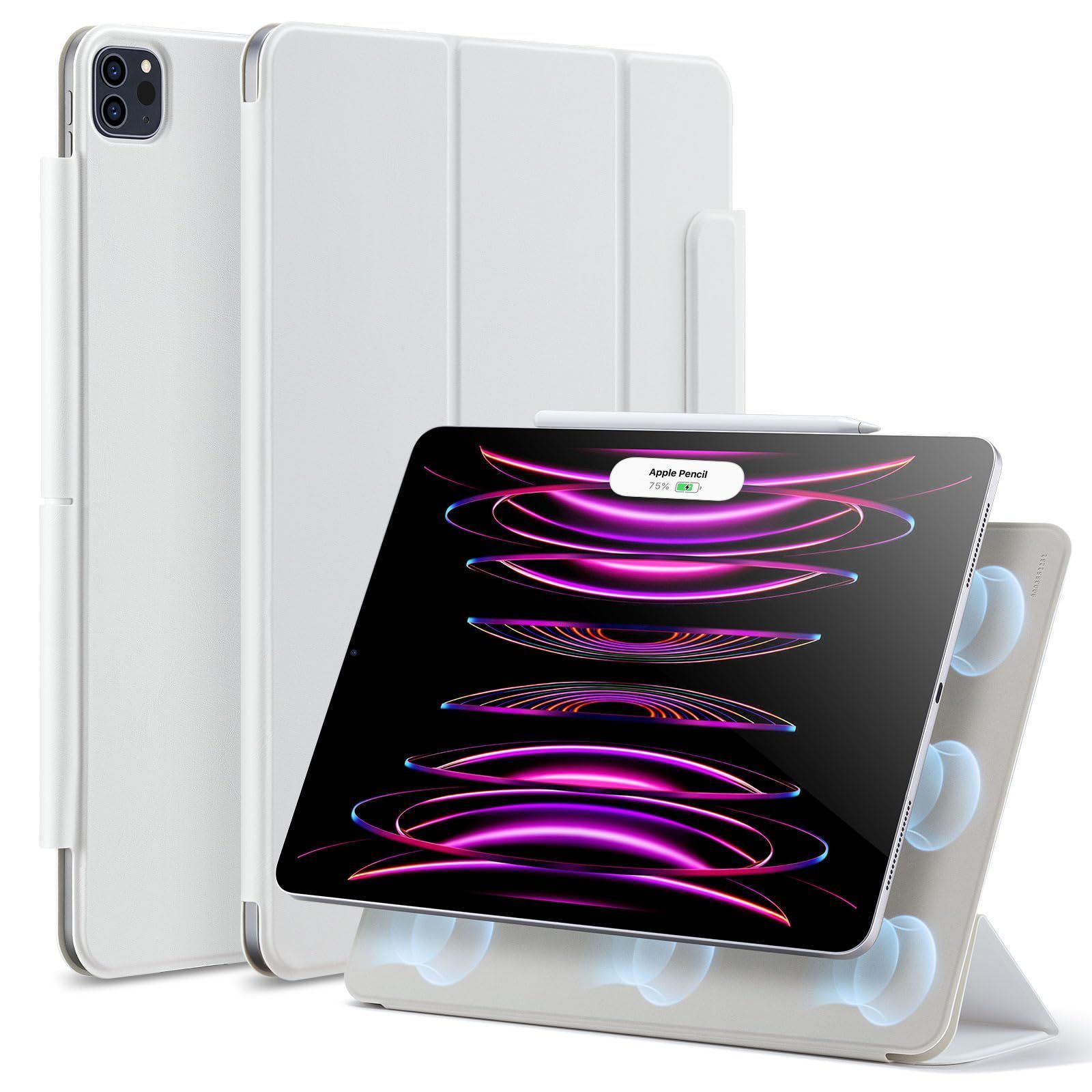 ESR iPad Pro 12.9 ケース (2022/2021/2020、第6/5/4世代) iPad Air 13インチ 専用カバー (2025/2024) マグネットス吸着式 Pencil2対応 三つ折りスタンド オートスリープ・ウェイク Rebound 磁気 ホワイト