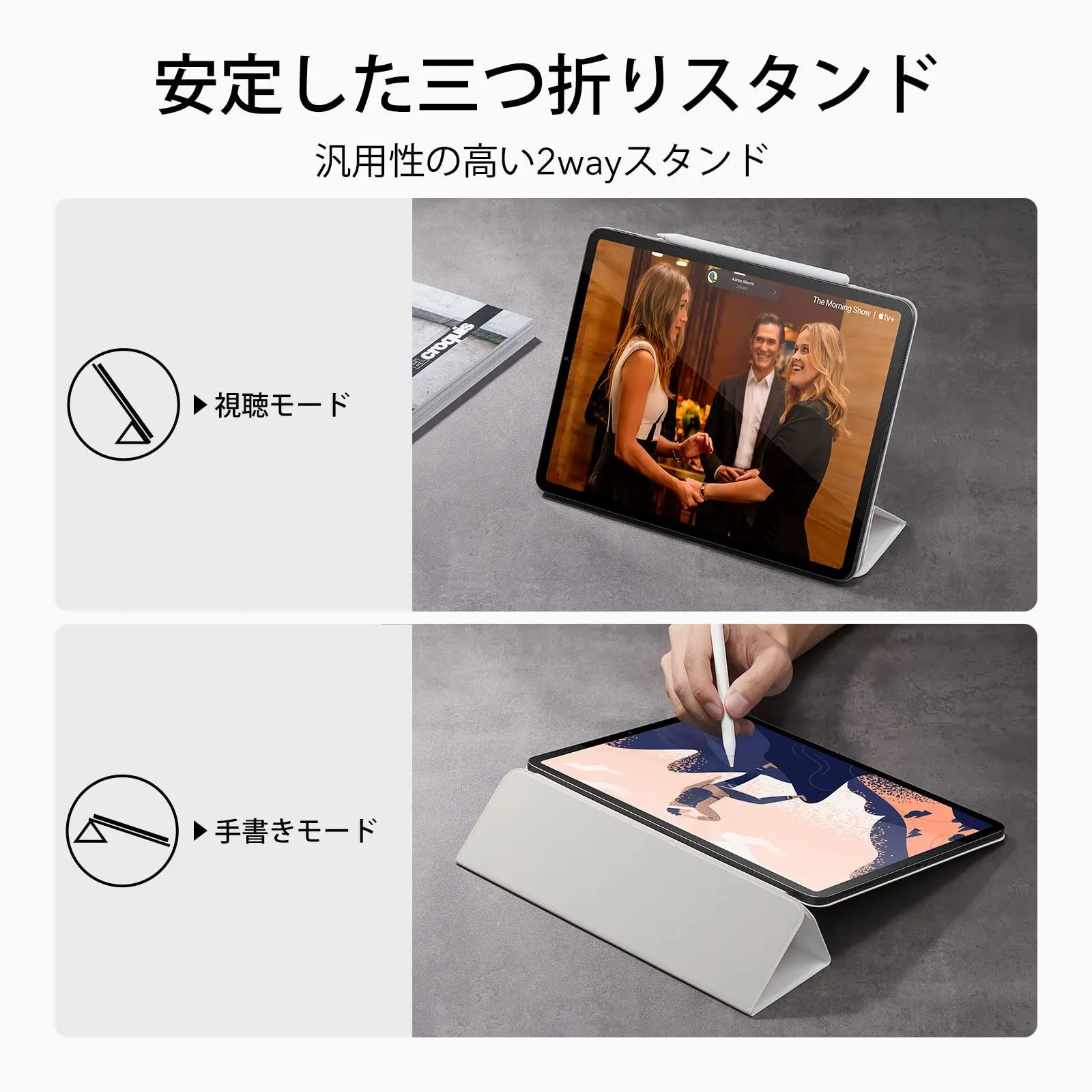 【スリム&安定】:持ち運びに便利な軽量設計で、閲覧、タイプ、手書き用に前面カバーを安定したスタンドとして活用できます