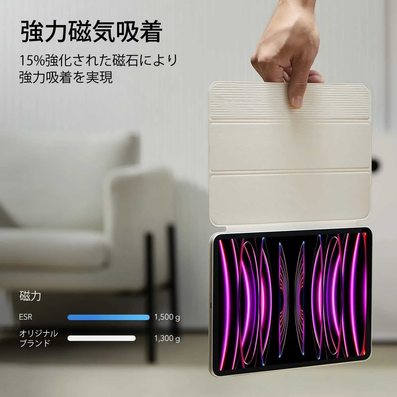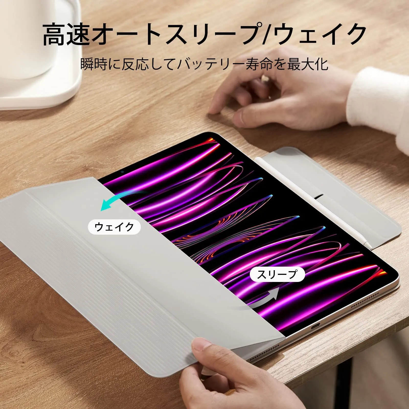 【強力マグネット吸着】:強力なマグネットがケースとタブレットを強力に固定します