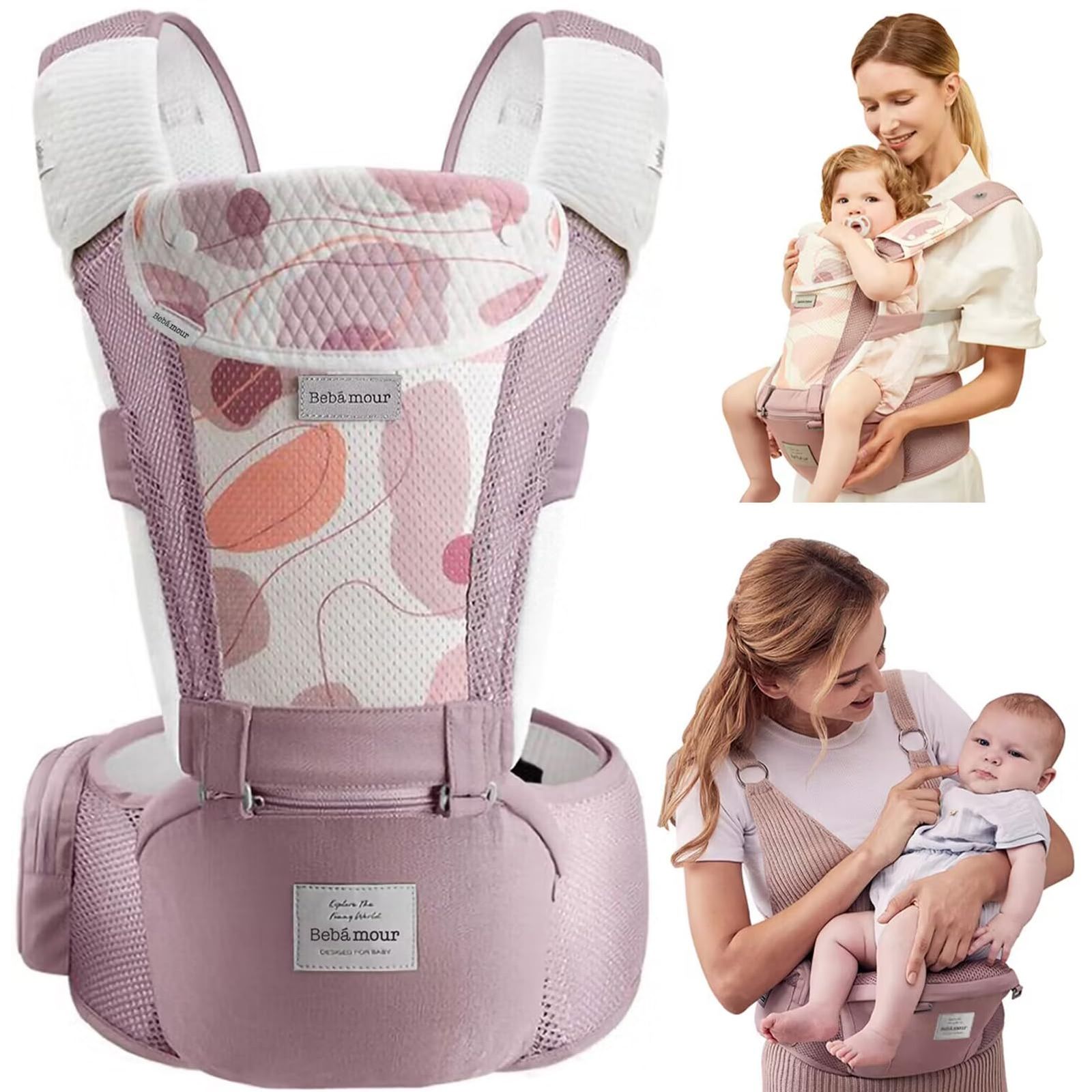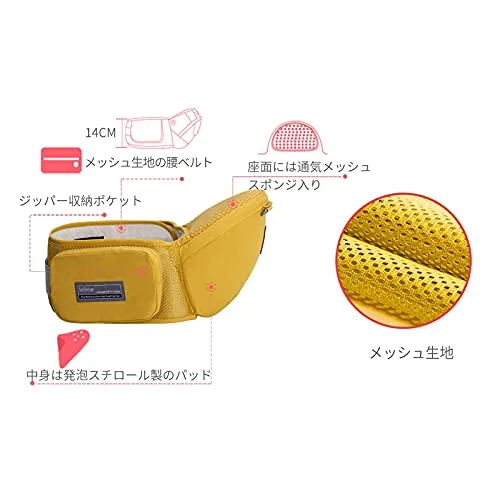 [ヒップシート]中身は発泡スチロール素材を使い、軽くて耐久性に優れます。座面にはシリカゲル製の滑り止めが入って、スポンジも厚く入って、赤ちゃんが座った後、おしりへのストレスが軽減して、快適です。面ファスナーと腰バックルの二重連結装置で、使用中にスレ、弛みなどが起こる心配なし。単体として横抱っこ、前向き抱っこ、対面抱っこと3 wayの使用方法。