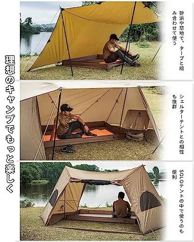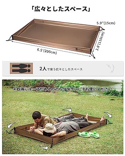 【バスタブ型グランドシート】リビングシートのふちが立ち上がり、シート内に砂や虫などが入ってくることを防げます!テントやシェルターのリビングに敷く専用シートです。#四隅にループがあるのでペグダウンしてお使いください。