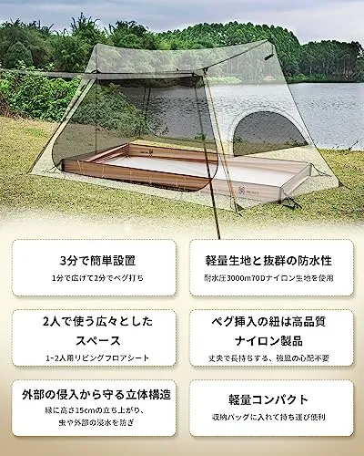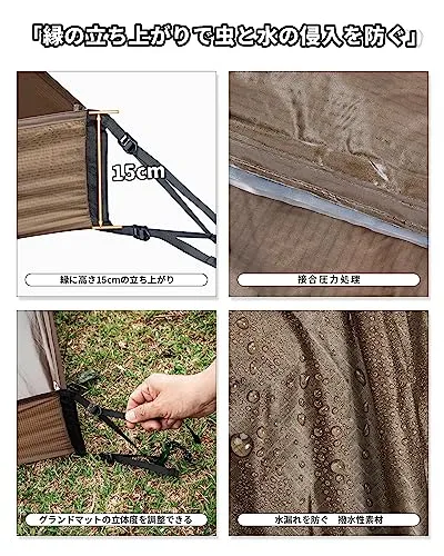 【取付簡単】特別に設計されたコーナーにより、素早くピンと張ったセットアップで簡単に調整できます。形の柔らかい芝生や砂場でシートを広げて、ペグダウンしてショックコードを調整して、バスタブ型に立ち上がります。しっかり地面に固定できるので、風に吹き飛ばされる心配もありません。