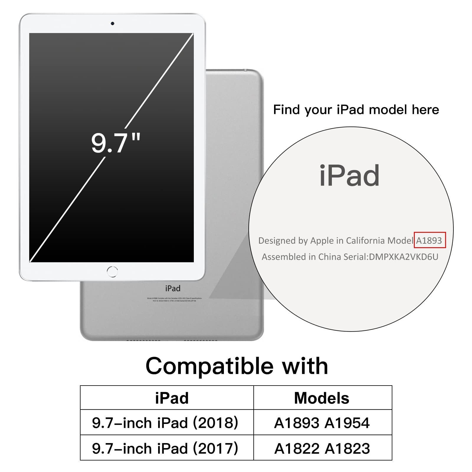[互換性] iPad 第6/5世代(9.7インチ、2018/2017モデル)用の特別デザインです。対応モデル: A1893 A1954 A1822 A1823。ご購入前にiPadのモデルを確認してください