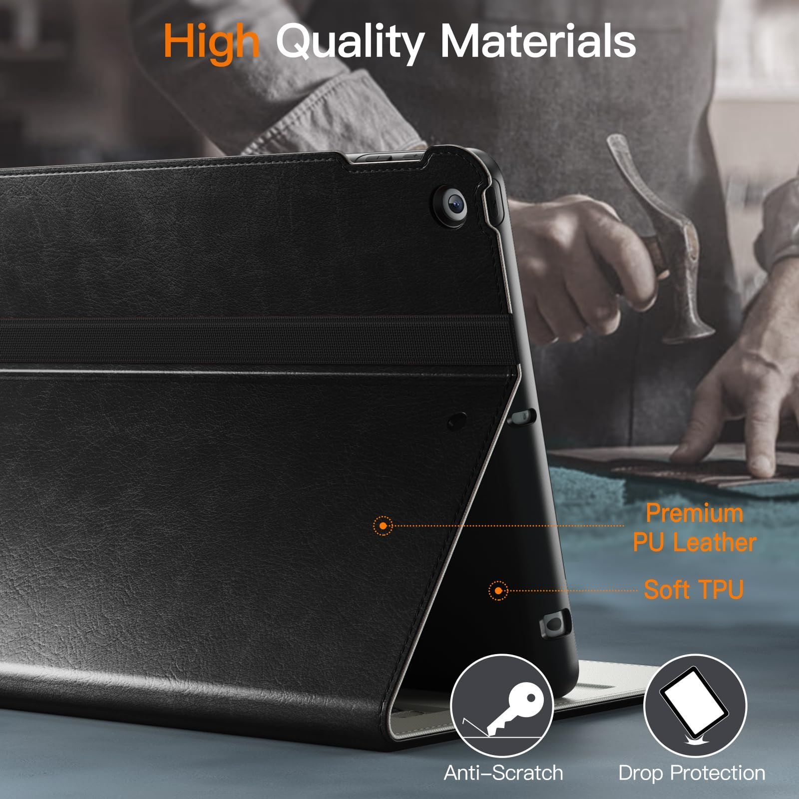 [高品質の素材] プレミアムPUレザーの外装と柔らかいTPUのインナーバックで作られています。 iPadを傷や落下からしっかりと保護します。耐久性があり、クラシックで快適な手触り