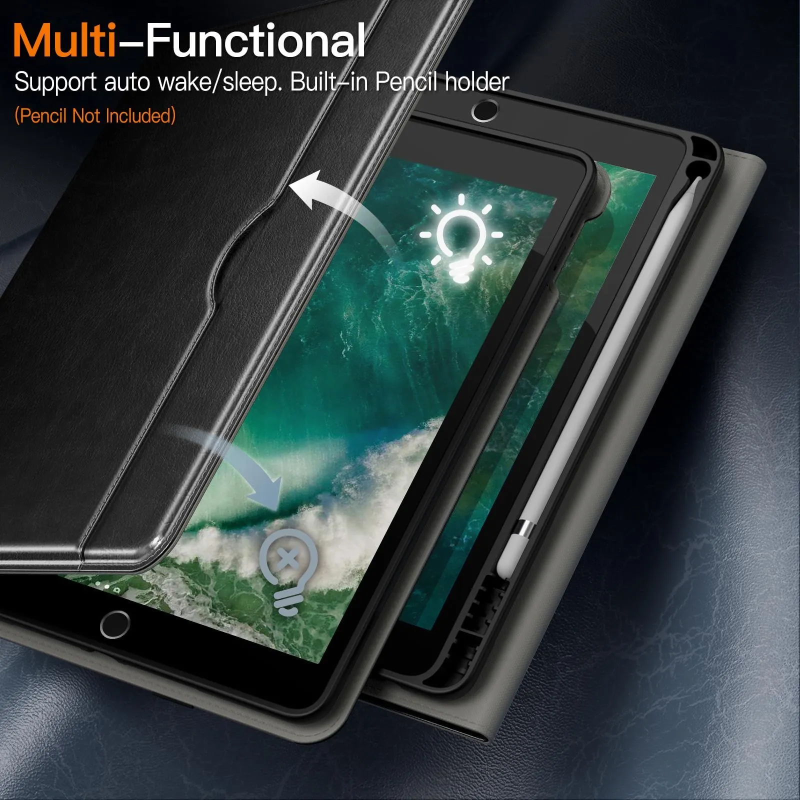 [使いやすい] このレザーケースは、iPad を複数の視野角に調整できるようにします。また、正確なカットアウトにより、すべての機能とボタンを簡単に制御できます