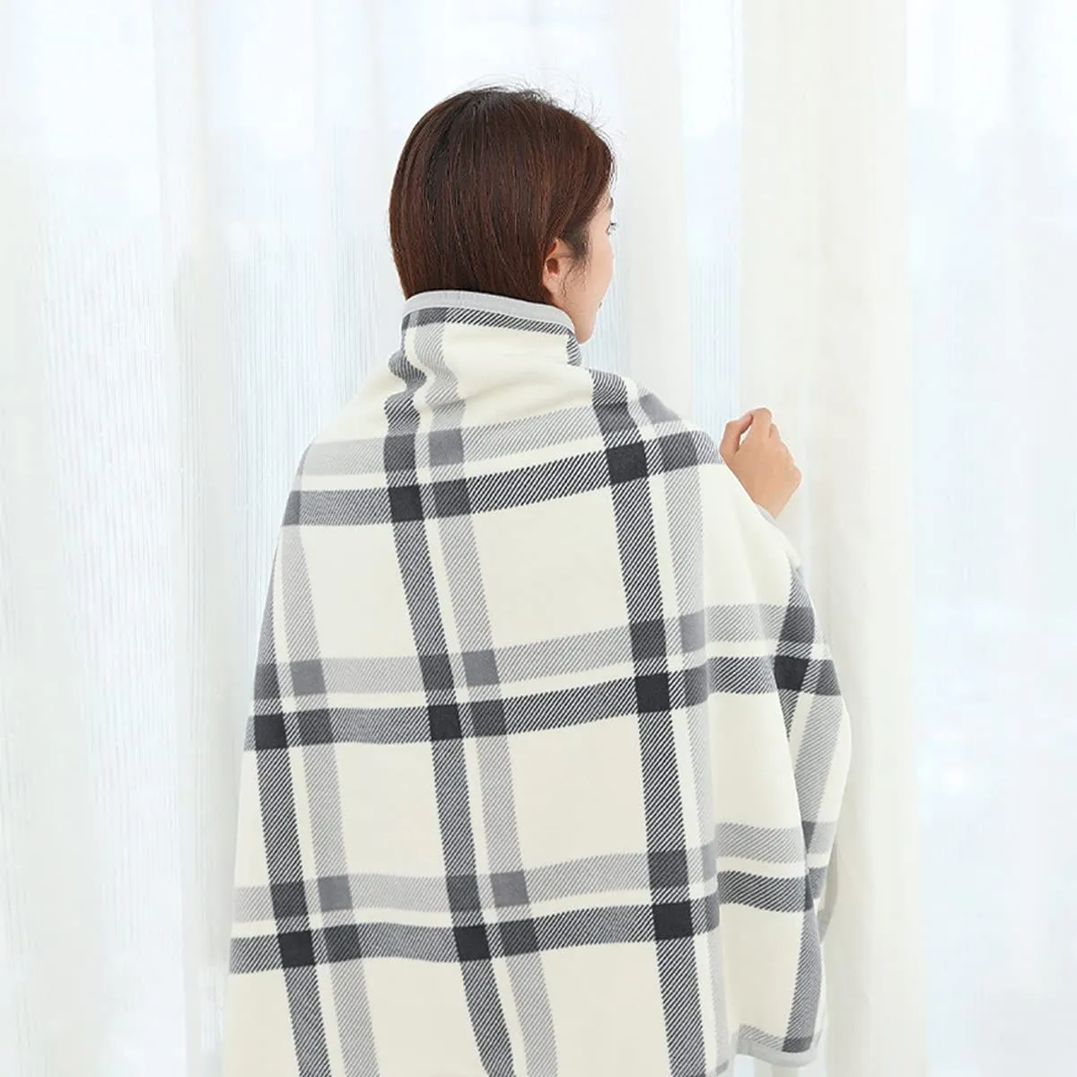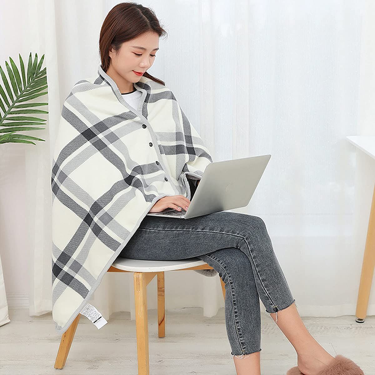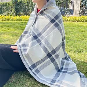 【多機能なブランケット】サイズ:100 × 140cm (±5cm)、下半身をすっぽりと覆えます、肩掛けとしても使。2種類の色の選択:オフホワイト、青い。おしゃれできれいです、男女兼用のタイプで。手洗いまたは、洗濯機で洗えます。