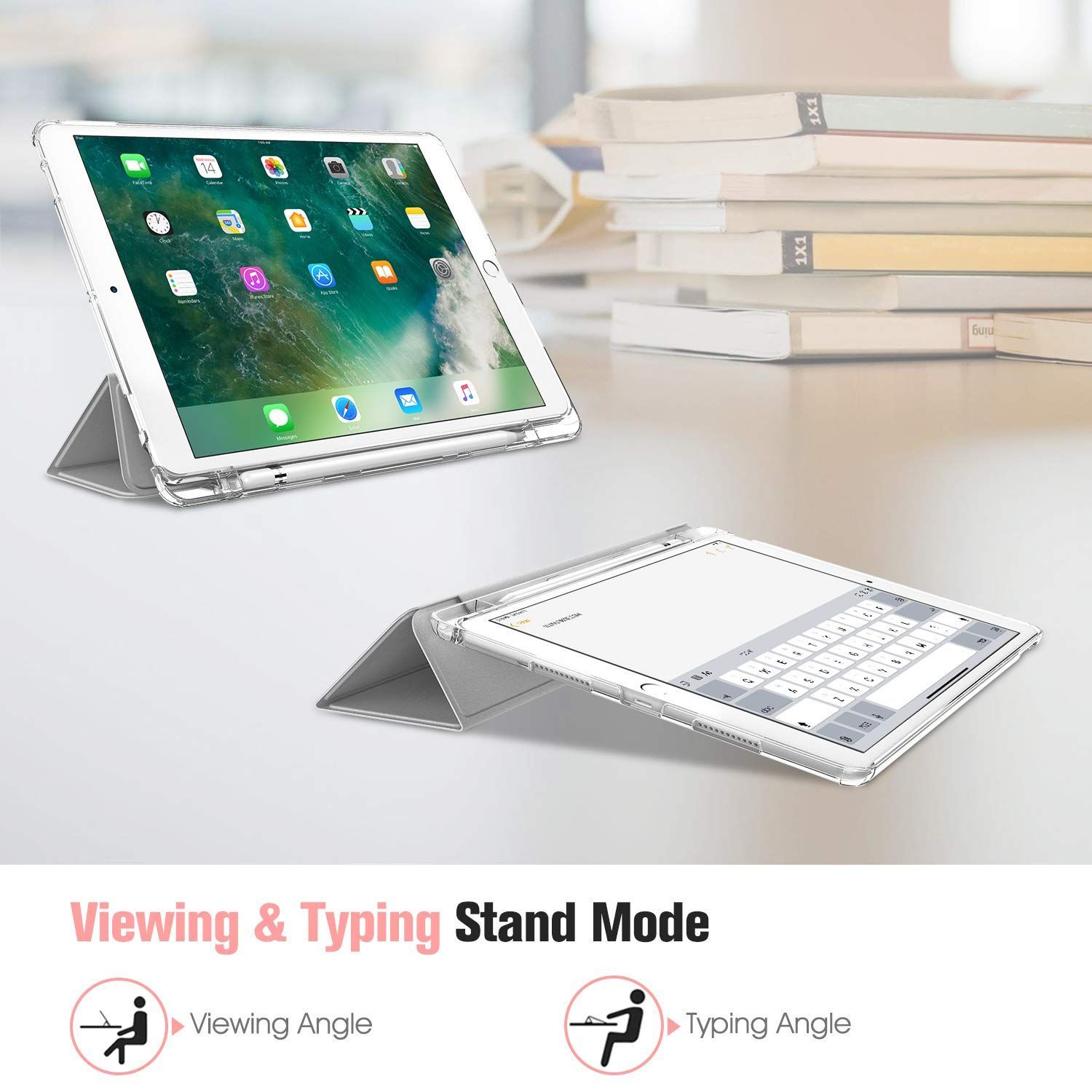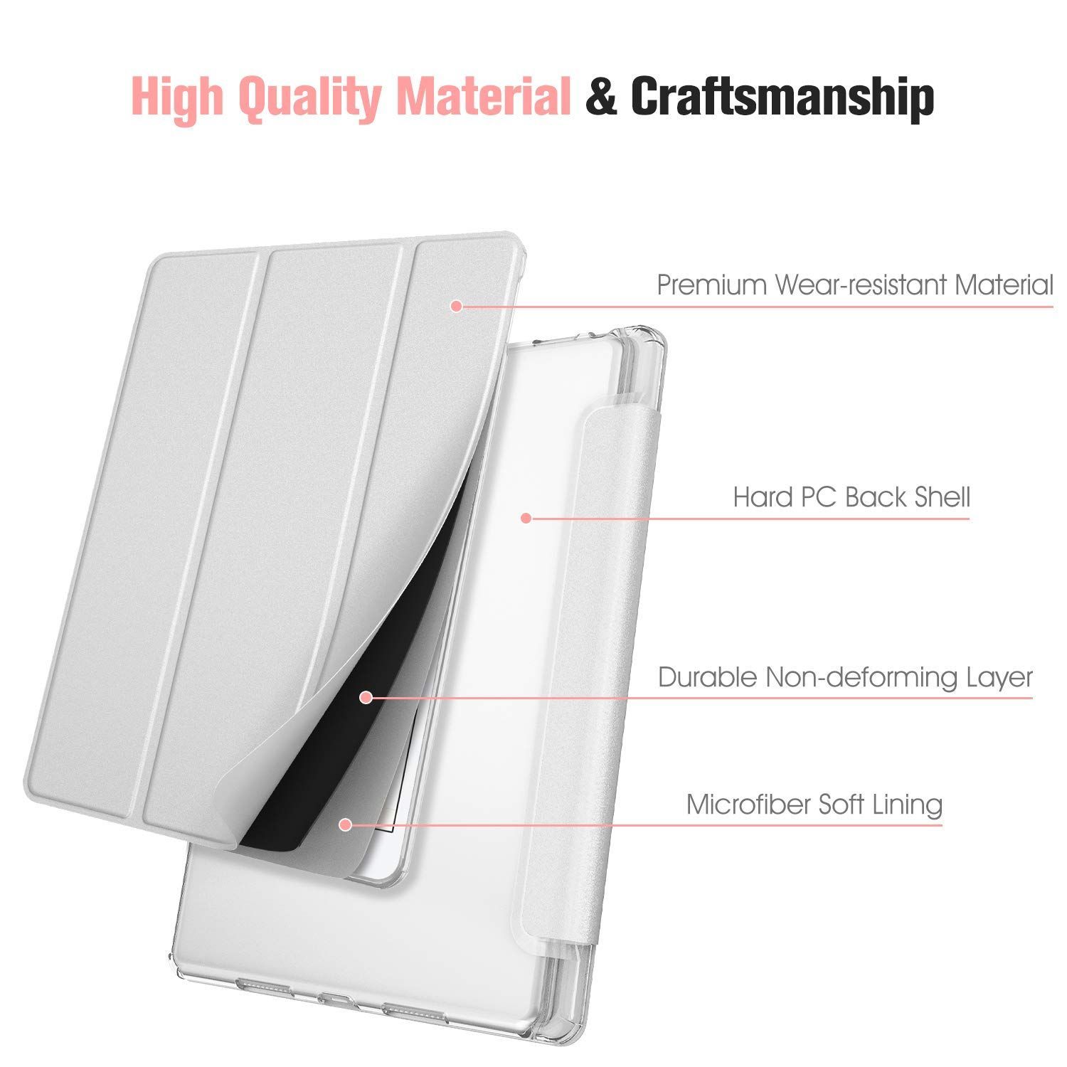 Fintie iPad Air 2019 ケース iPad Air3 / Pro 2017 10.5インチ バックカバー Apple Pencil 収納可能 三つ折スタンド スリープ機能 軽量 薄型 半透明 傷つけ防止 PUレザー(モデル番号A2152、A2123、A2153、A1701、A1709)(シルバー)