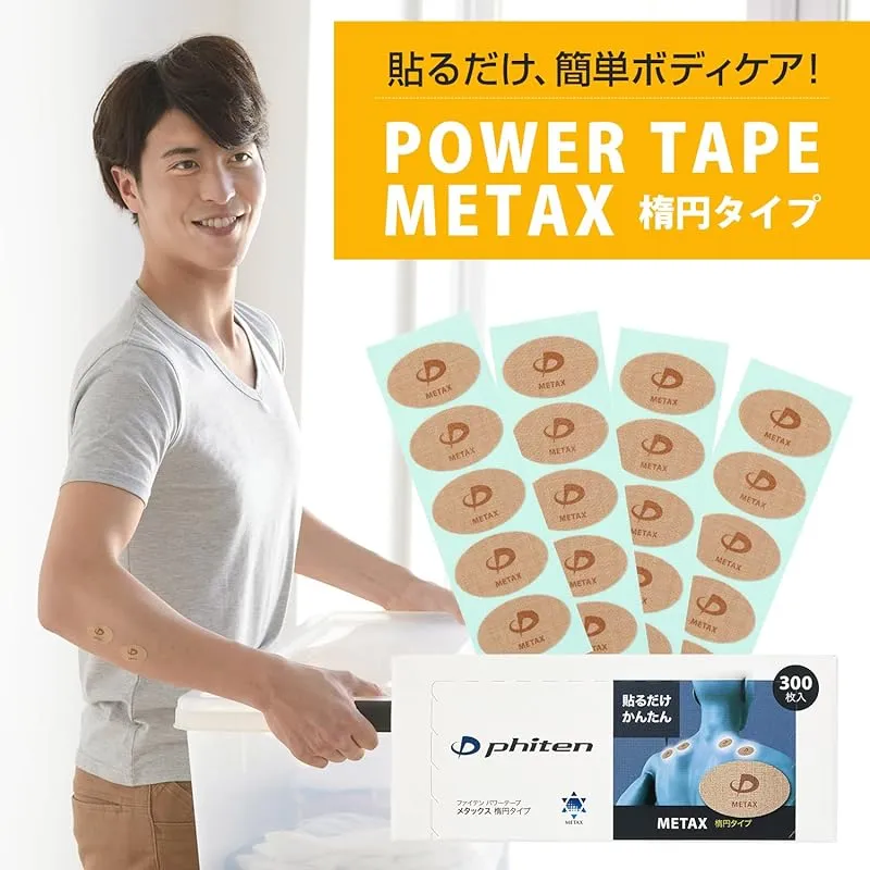 商品名:ファイテン(phiten) メタックステープ 楕円タイプ 300枚入 大容量 業務用 新加工技術採用 ボディケアテープ テーピング 肩 首 腰 膝 ふともも ふくらはぎ こめかみ 貼る リカバリー リラックス サポート スポーツ アスリート