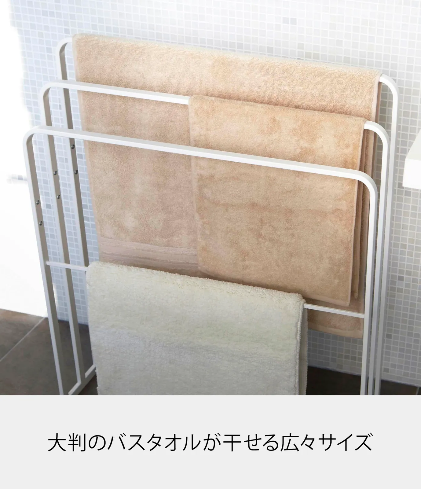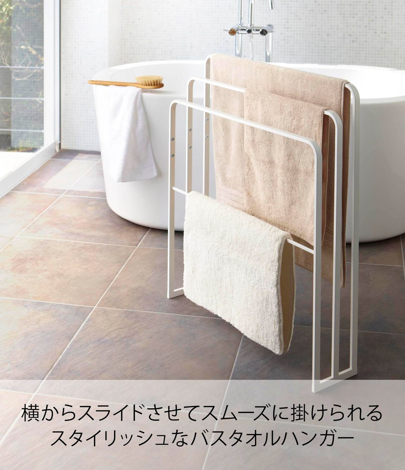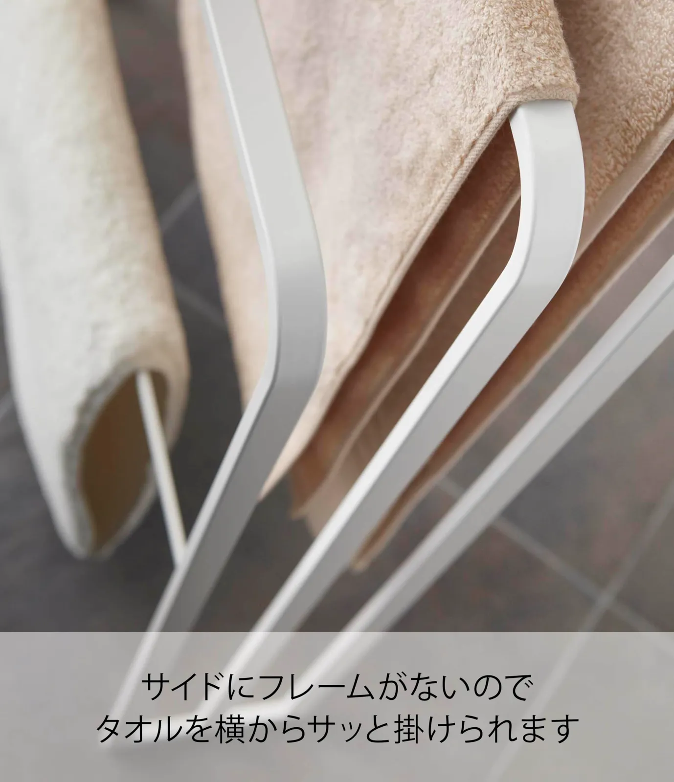 山崎実業(Yamazaki) 横から掛けられるバスタオルハンガー 3連 ホワイト 約W70XD14XH81cm タワー 掛けやすい 大判サイズも干せる 4979