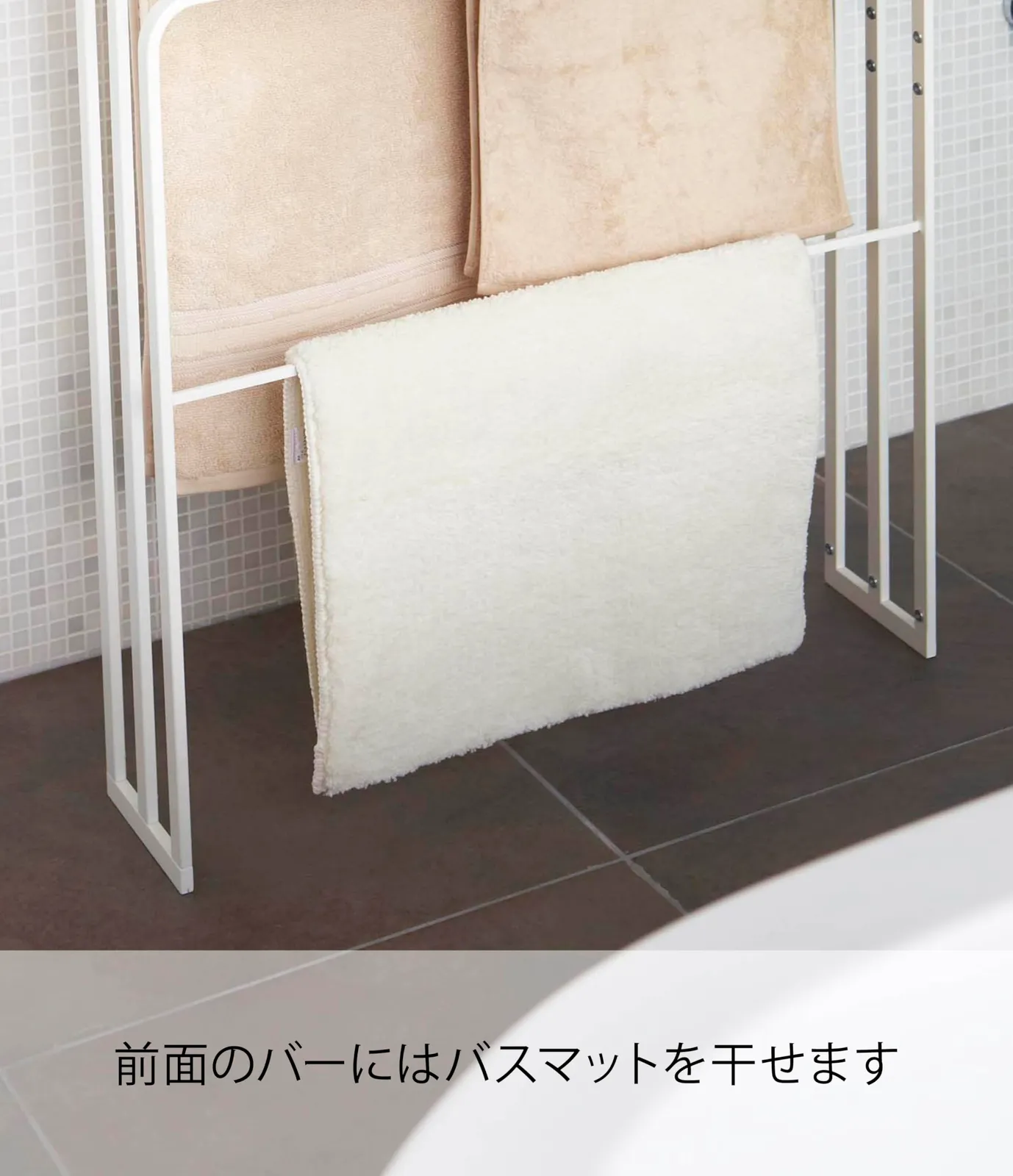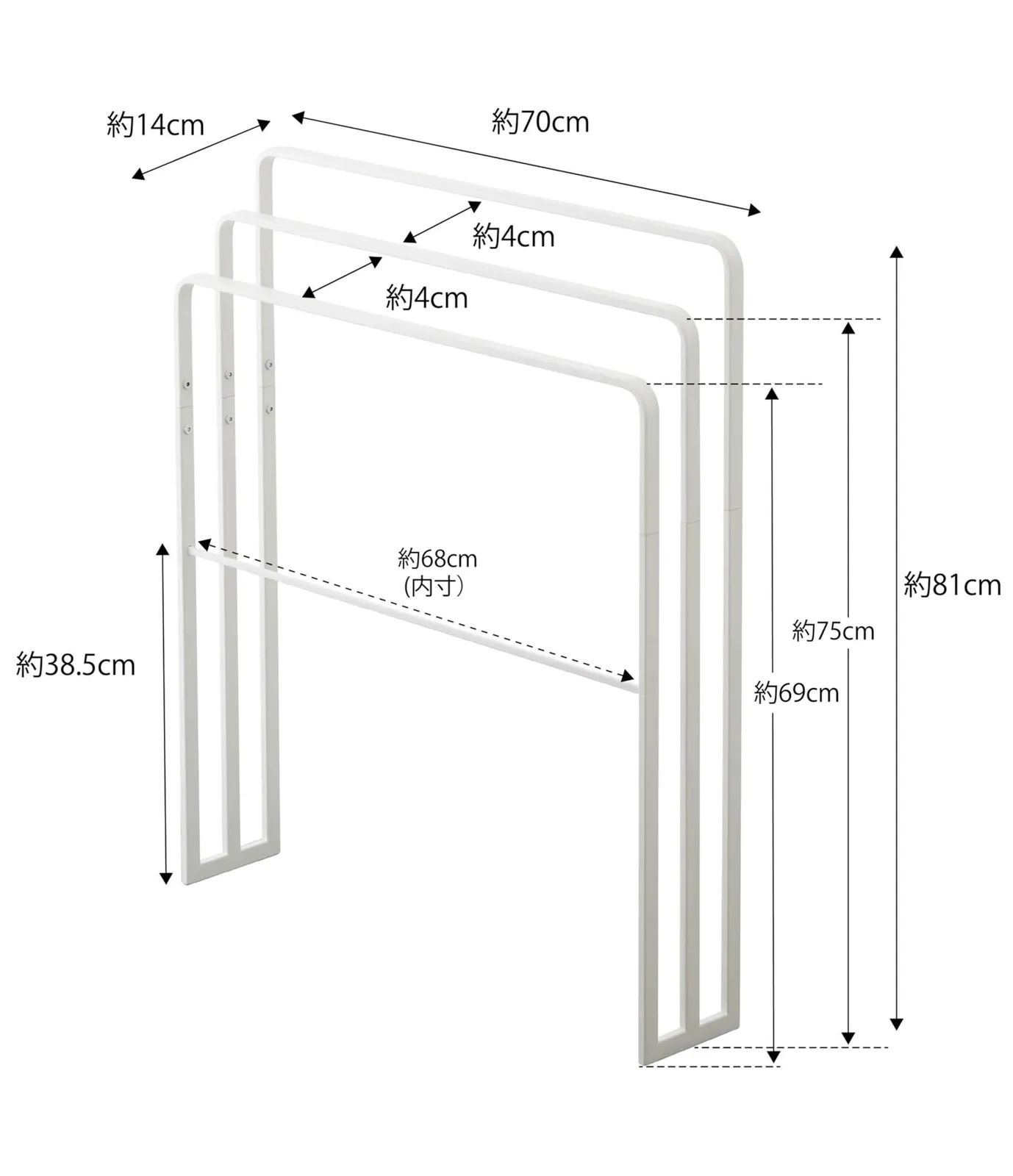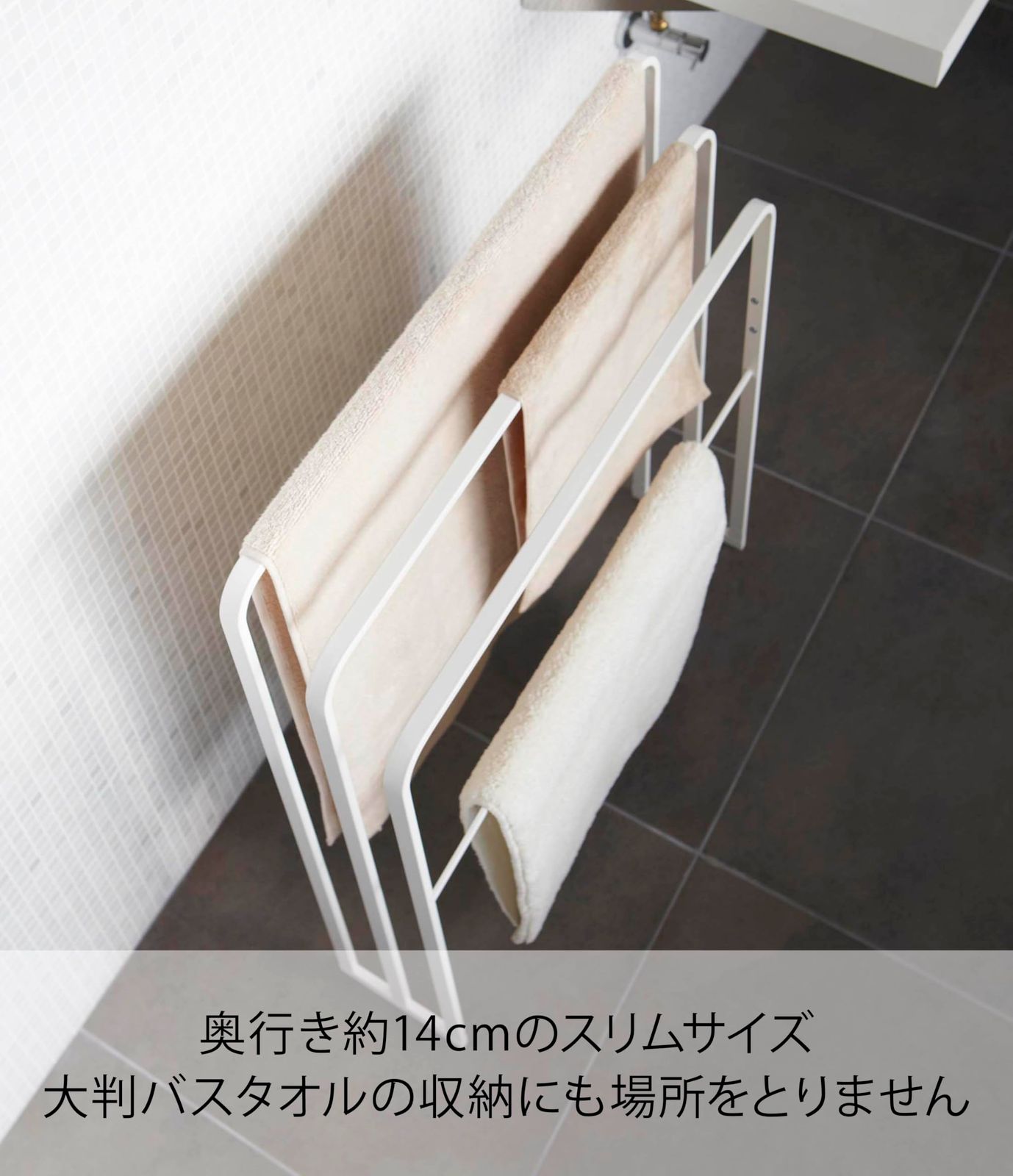 山崎実業(Yamazaki) 横から掛けられるバスタオルハンガー 3連 ホワイト 約W70XD14XH81cm タワー 掛けやすい 大判サイズも干せる 4979