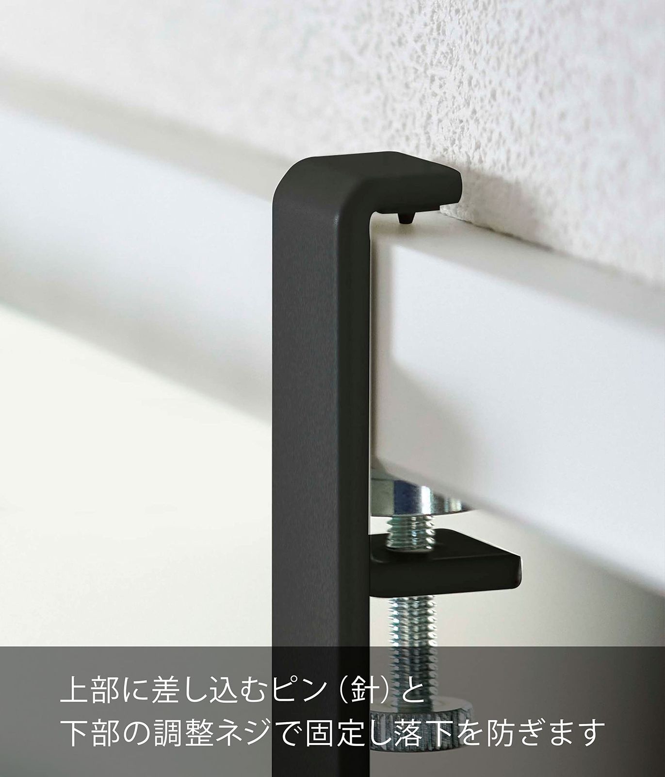 取り付け可能な場所:木製の鴨居・スライド扉の枠・窓枠・机・棚 枠の幅:幅約180cm以内 枠の厚さ:約1.5cm~3cm/枠上部の奥行き:約1cm以上/枠下部の奥行き:約1.5cm以上