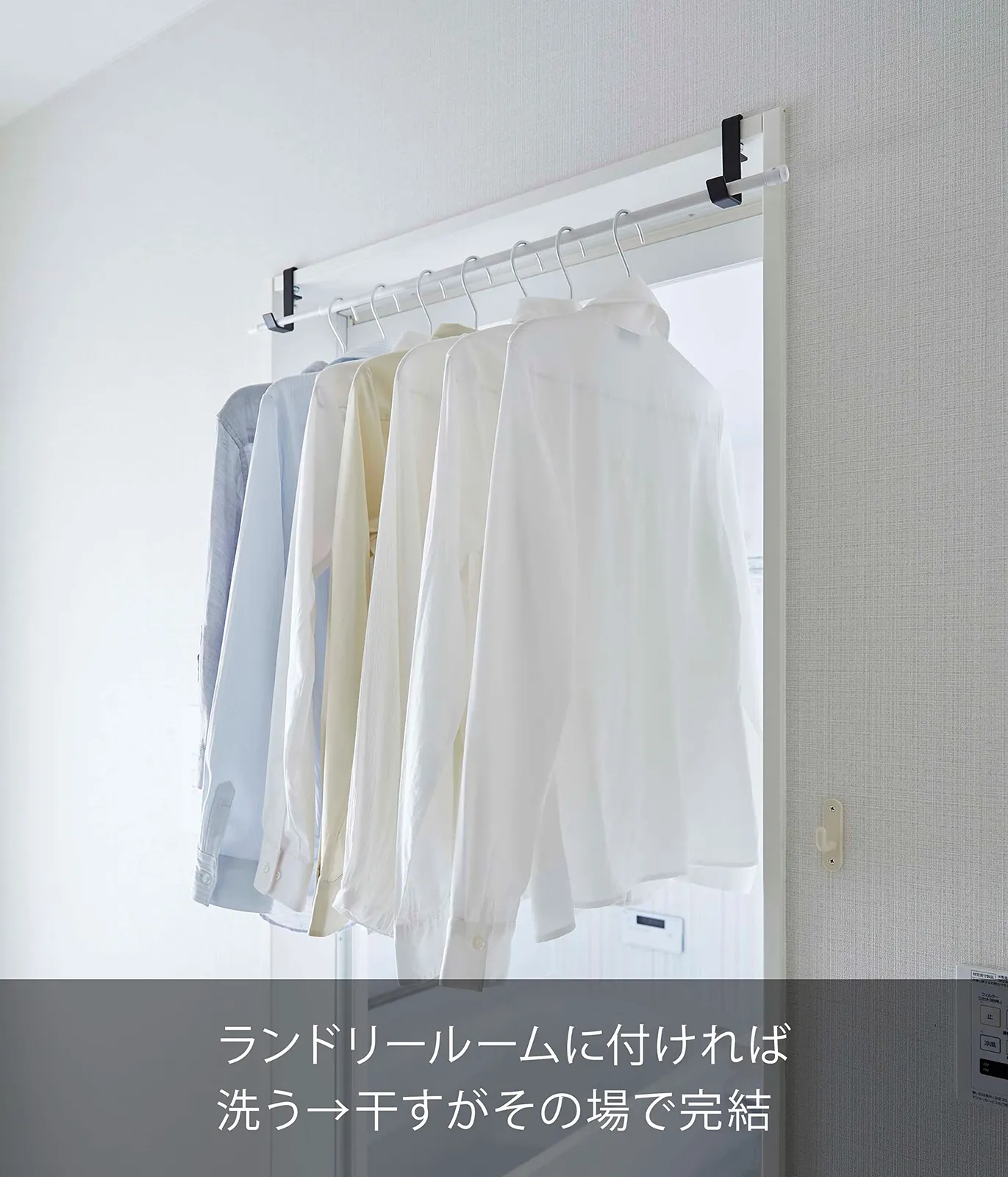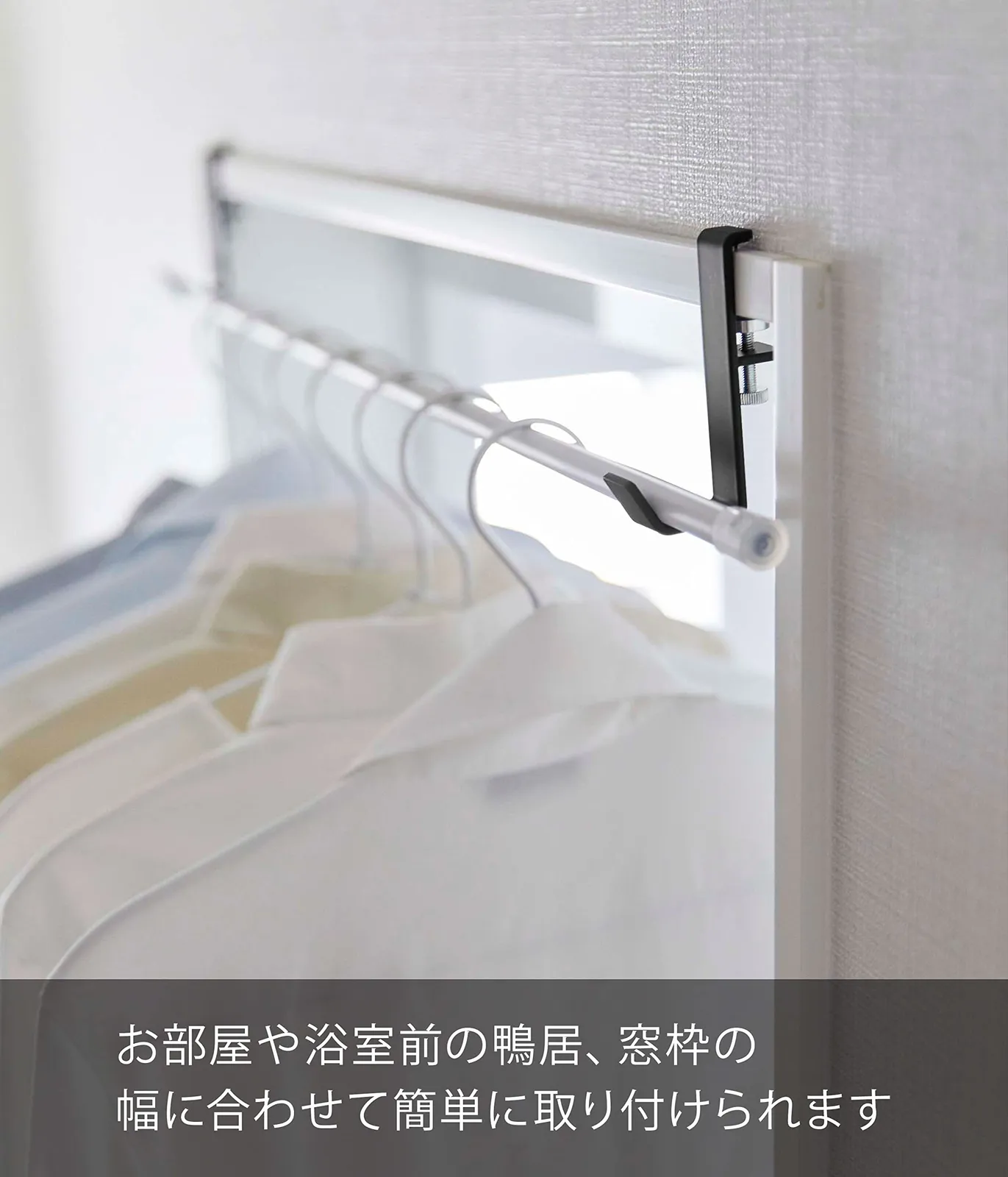お部屋や浴室扉前の鴨居、窓枠などに簡単取り付け。
