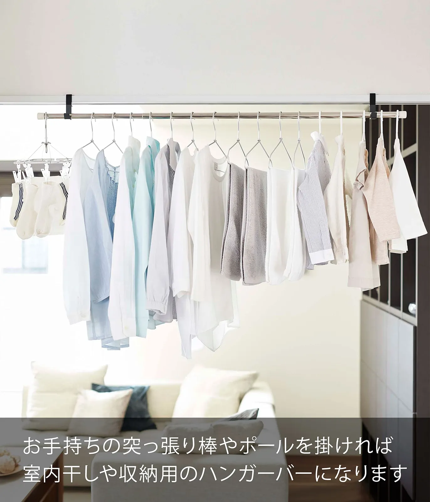 洗濯物の干し場や収納としても使用できます。