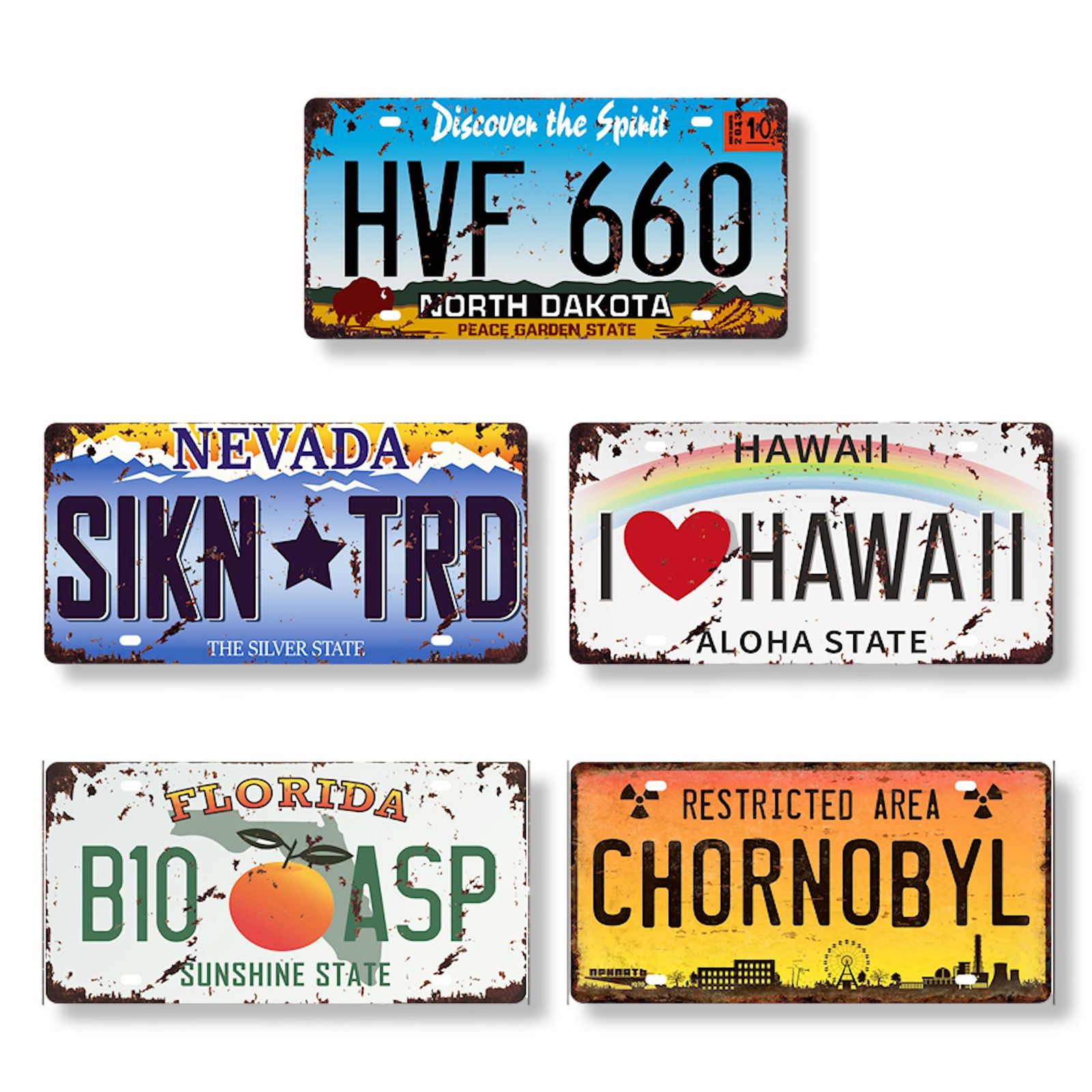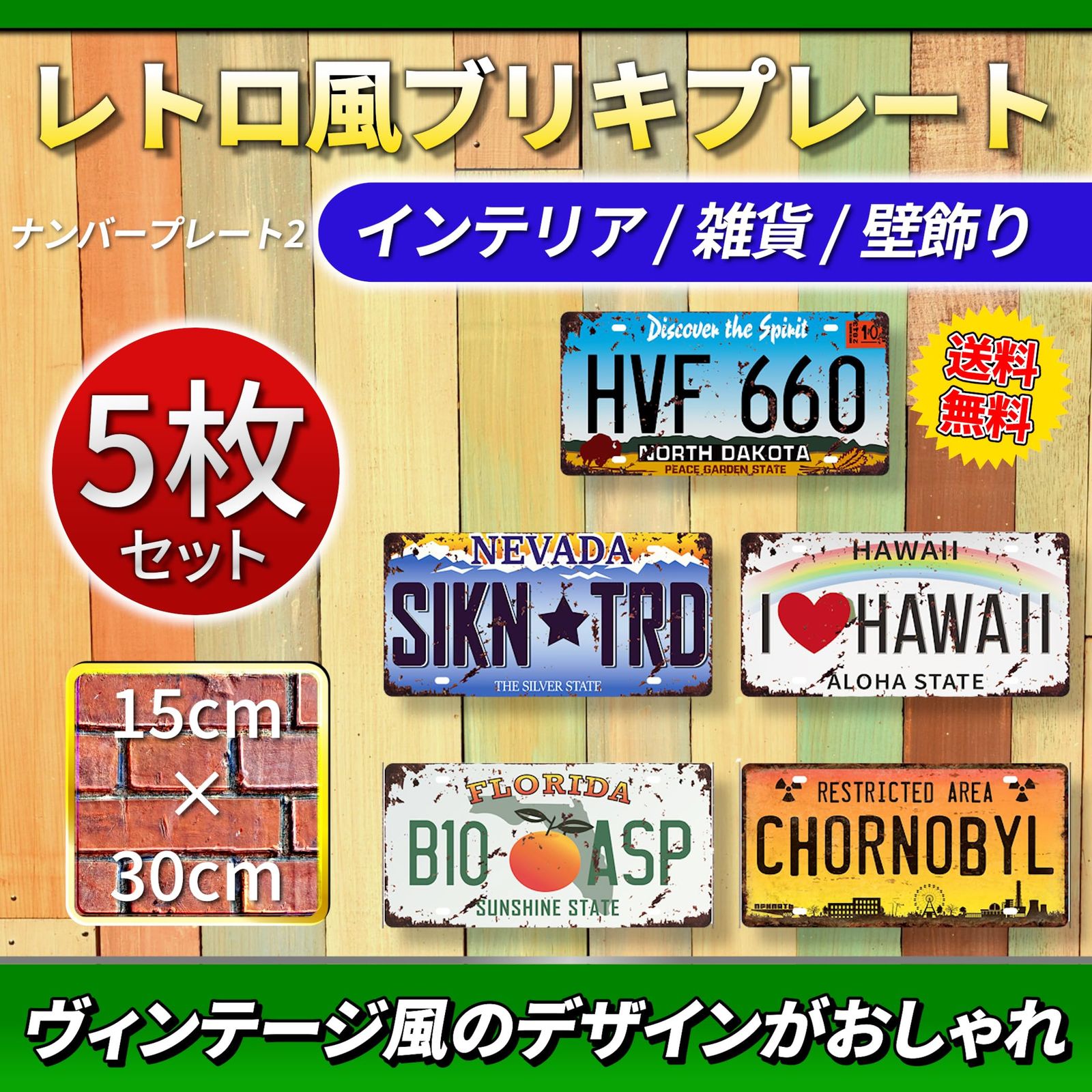 ブリキプレート : このアンティーク調のブリキプレートは、まるで昔のものを復刻したかのようなデザインで、古びた感がとてもおしゃれです。また、セットで5枚もあるため、さまざまな場所に飾ることができ、インテリアをより一層彩ることができます。