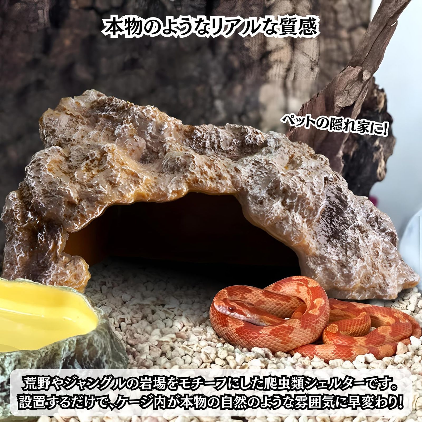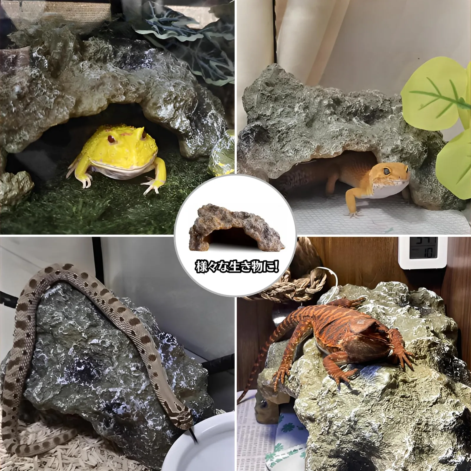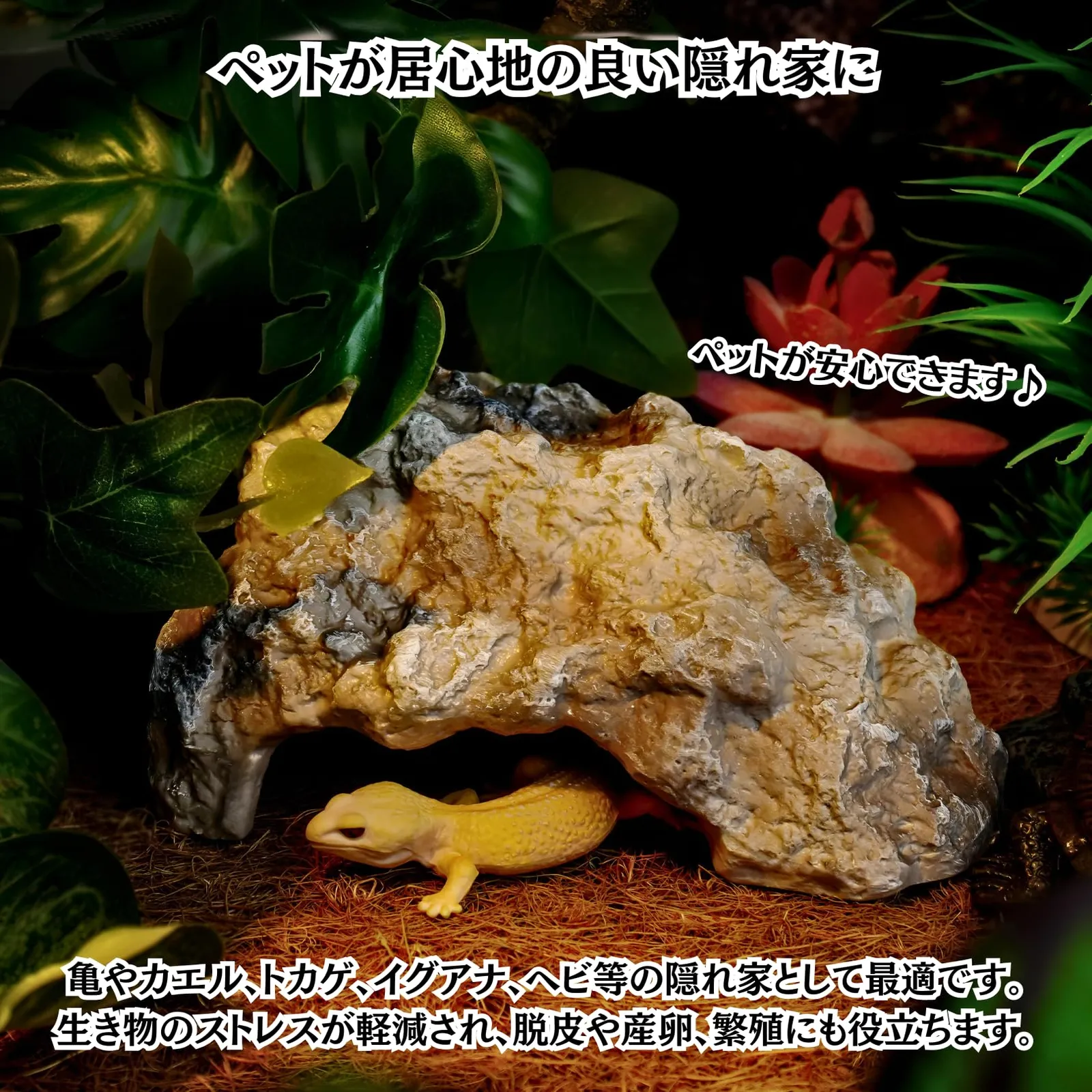Charmoon 爬虫類 両生類 シェルター 岩 レオパ トカゲ 亀 ヘビ カエル 飼育 隠れ家 寝床 (Sサイズ)