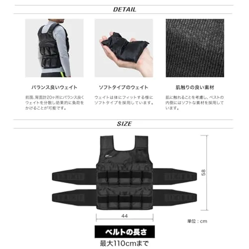 セット ベスト本体 x1 ウェイト(約1kg) x20