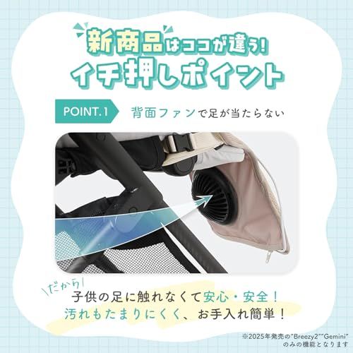 【EZ-Comfy Breezy2】:2023年、2024年と連続でSNSでバズって売り切れ入荷待ち続出!ベビーカーやチャイルドシートに装着して赤ちゃんに優しく風を送るファンシートの2025年モデル、イージーコンフィーブリージー2です。過酷な夏も快適に。熱中症対策として。