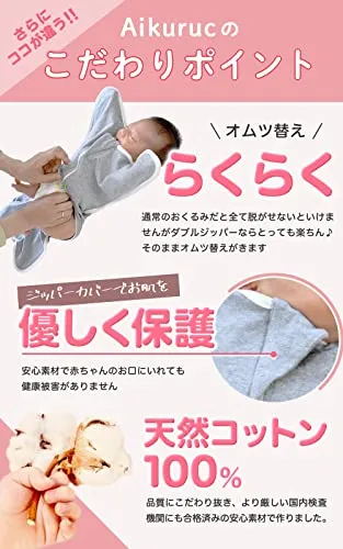 【吸汗性&通気性抜群】生地が薄く乾きやすい&通気性抜群でムレにくいので、赤ちゃんが快適に過ごすことができます。吸水性が高いので、汗をかきやすい赤ちゃんにも 直接肌に触れさせたくない場合も衣類の上から着るおくるみを着用出来るので、毛布やブランケットが必要なく、赤ちゃんにとってより安全で良質な睡眠となります。