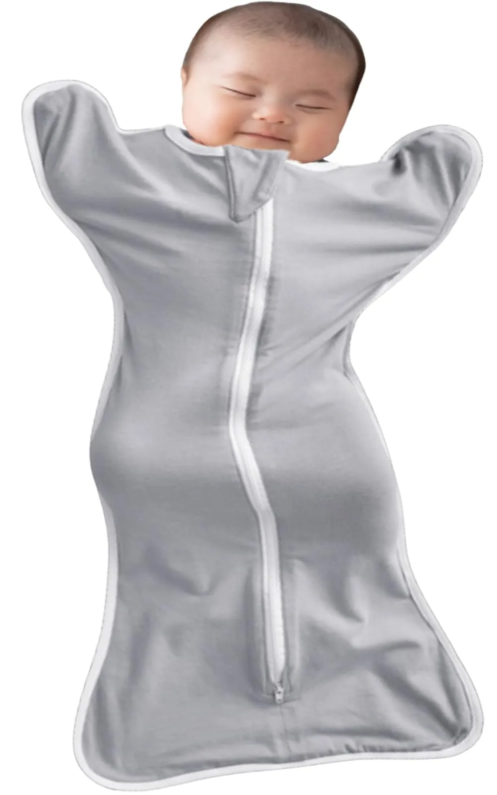 【赤ちゃんを無理に拘束しない設計】赤ちゃんの手足を固定してモロー反射を防止する従来のおくるみとは違い、当社の着るおくるみのユニークなデザインは、赤ちゃんにとって楽なバンザイポーズでぐっすり眠ることができます。