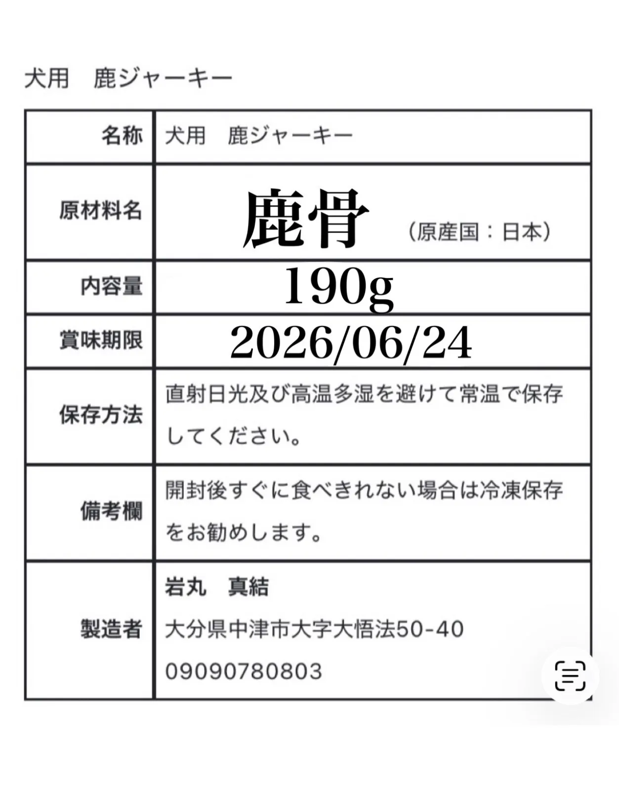 原材料名:鹿骨