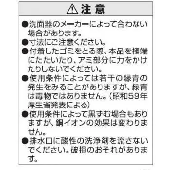 洗面器の排水口に使用するゴミ受です。銅イオンがぬめり、悪臭を抑えます。細かいゴミもキャッチします。
