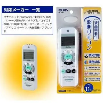 国内メーカー11社対応しています。照明の主な操作はもちろん、便利なOFFタイマー機能付きで便利。再設定不要のバックアップ機能も搭載しています。